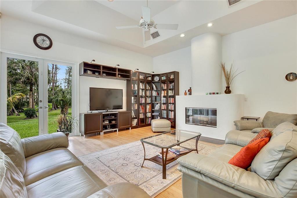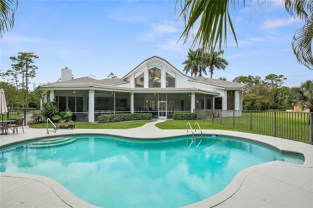 Modern Estate in Prestigious Whispering Woods 5/ 4.5 3 car garage 1 Level on 1 acre beautiful cul-de-sac. Enjoy outdoor entertaining, fenced resort style pool, expansive screened patio w/outdoor kitchen. Soaring Ceilings Highlight Expansive Airy Views of Nature. Natural Stone & Wood Floors. Gourmet Custom Wood Kitchen w/ Granite Counter-tops. Formal dining & Living. Family w/ wood burning fireplace. Spacious Master retreat w/ large walk in closets, Luxury Bath. Accordion Shutters. 3 A/C zones.