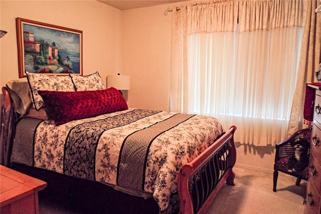 Unique 2 bedroom, 1-1/2 bath townhouse--only 5 of this model in the complex. Second bedroom is actually a loft which could be enclosed to make a second bedroom. Largest master bathroom in complex, specially-built, with Roman bathtub. Original owner. Tile floors downstairs, carpet upstairs. Air conditioner about 8 years old. Accordion hurricane shutters. Screened patio with storage room. Beautiful view of lake and fountains from back. Enjoy an evening stroll around the lake! Relax on the bench and enjoy!