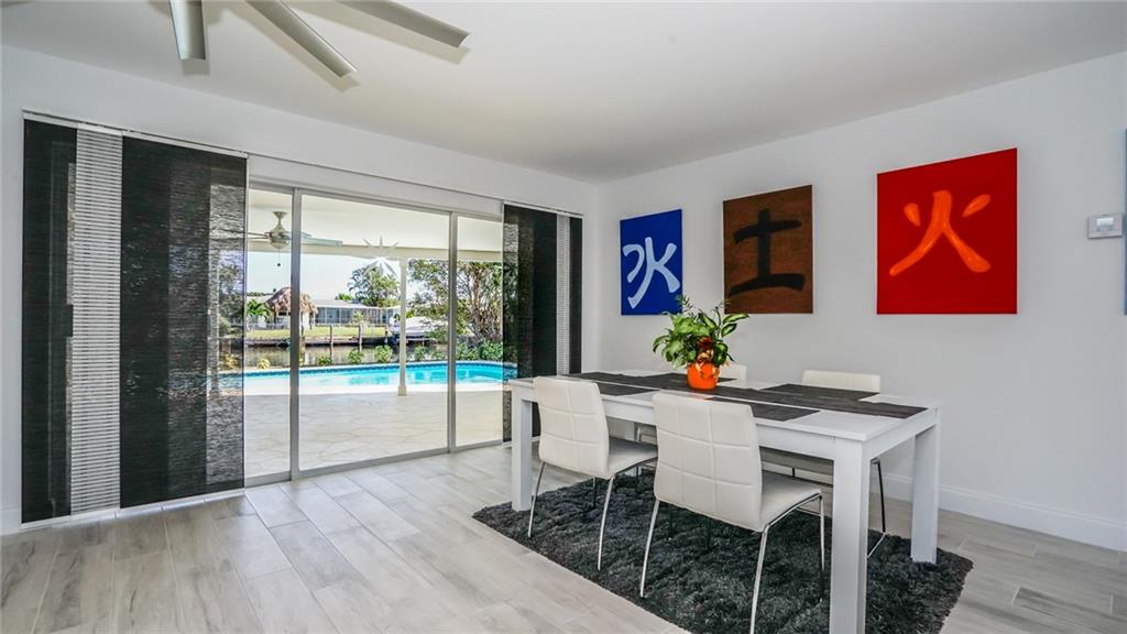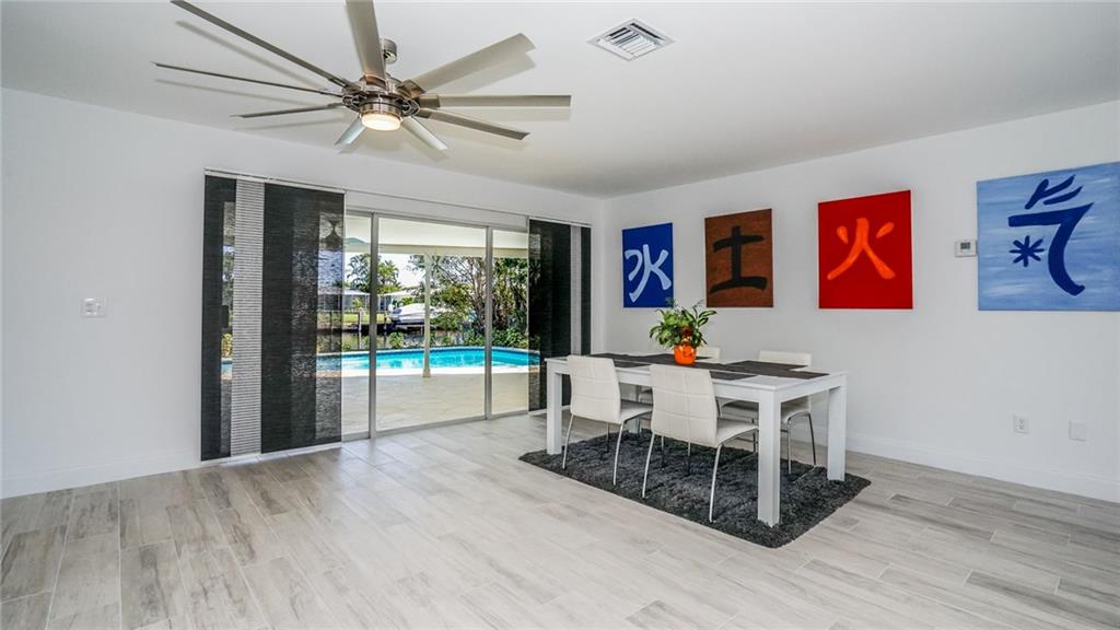 Waterfront, pool home on a cul-de-sac street. 75 feet waterfront with dock and boatlift. Modern interior, White Hi-gloss kitchen with quartz counter tops, European style bathrooms. 3 bedroom, 2 bathroom, laundry room, 2 car garage, Covered outdoor area. This is a must see!