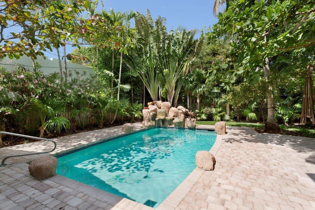 Encircled by lush tropical landscaping in a hedged, fenced yard, this charming two-story fully reflects our Florida lifestyle. A backyard patio and partially covered deck surround a private heated pool with an island-inspired rock waterfall. The front patio provides wide-ranging Intracoastal views, just steps from a private deeded dock that can accommodate a 40-foot boat. Garage is a one car tandem garage that comfortably accommodates 2 vehicles.