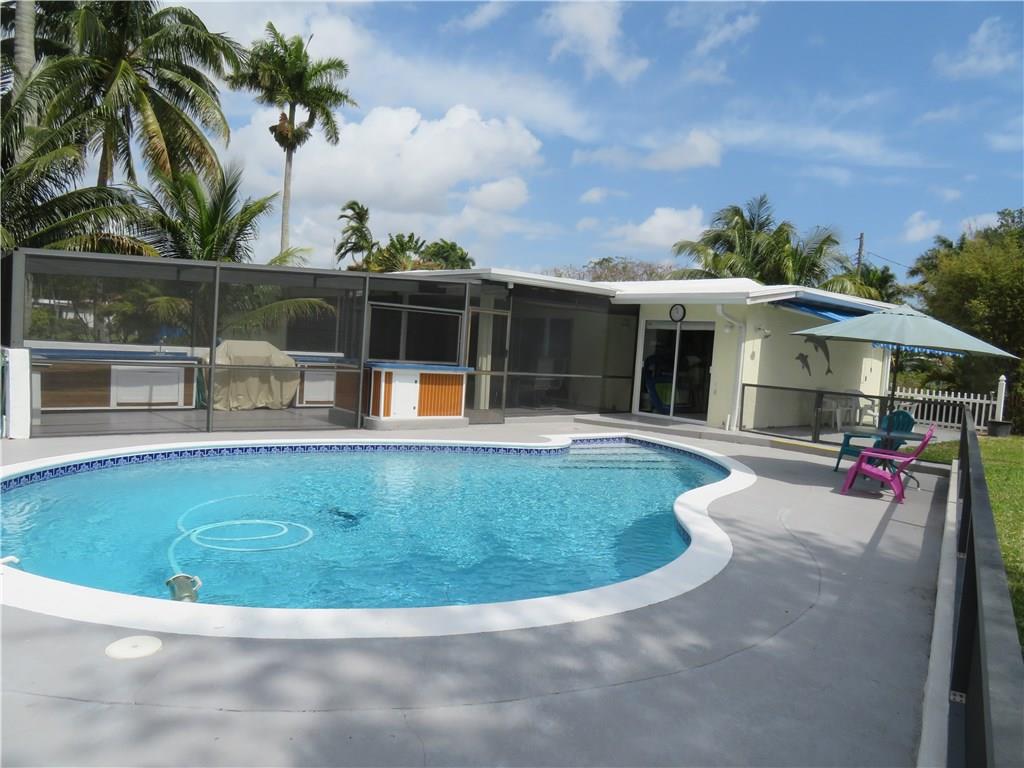 Tropical "Pair-A Dice" (Paradise)! A Rare Find. Bring your Mega Yacht, Sailboat and Water Toys to this Ocean Access Super Sized Point Lot with 245 ft of Deep Water, Ocean Access, No Fixed Bridges, with your own Fully Equipped Dock. Royal Palms Surround this Property. Situated in a Safe Harbor Neighborhood of Waterfront Homes. Ranch Style Home, Sparkling Pool, Soaring Ceilings with 2-car garage. Do not pass up this opportunity to buy the best of Florida's lifestyle.