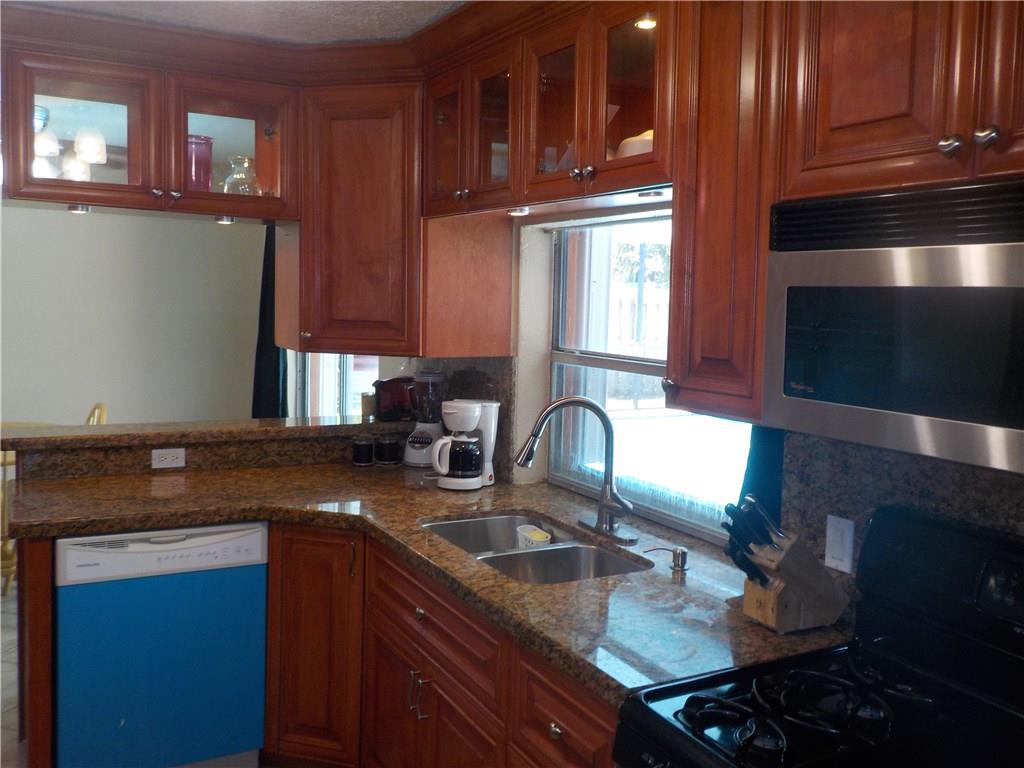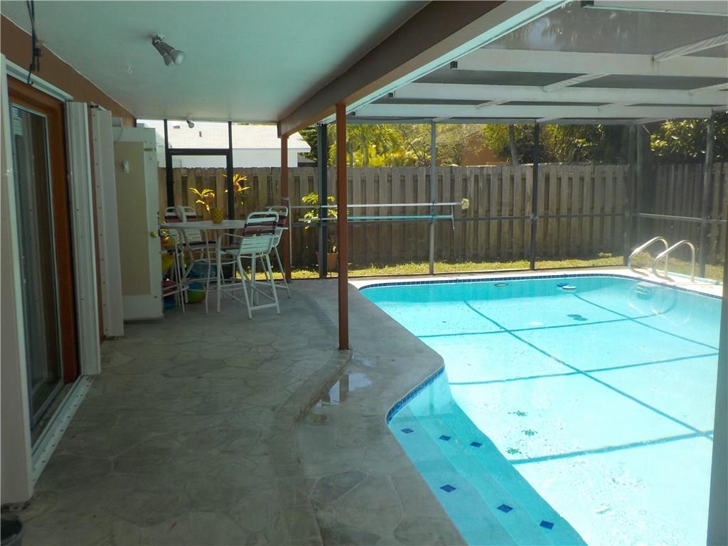 Beautiful 4 bedroom 2 bath in the heart of Sunrise Golf Village. Large eat-in kitchen with real wood cabinets, granite countertops and gas range. Relax and enjoy your sparkling pool with fully screened enclosure. Peace of mind and security are some other benefits of this home with security cameras and accordian hurricane shutters throughout the property. Circular driveway, fully fenced in yard, large aluminum shed and newer air conditioning unit add to the value and comfort of this great property.
