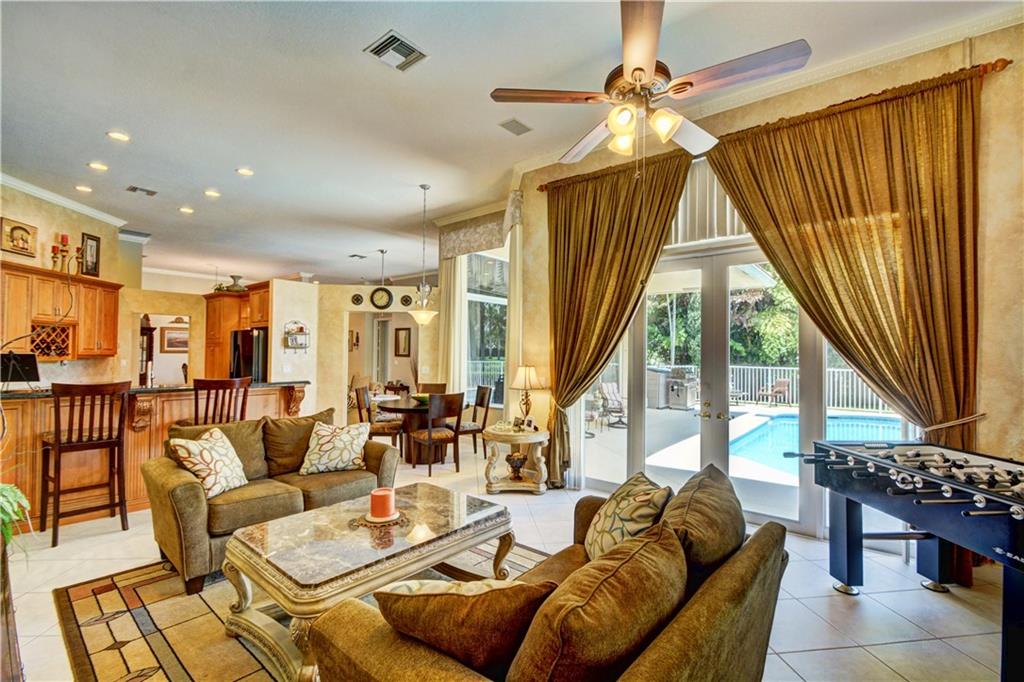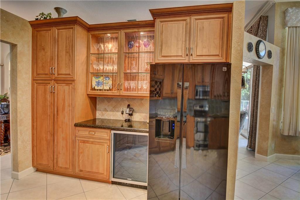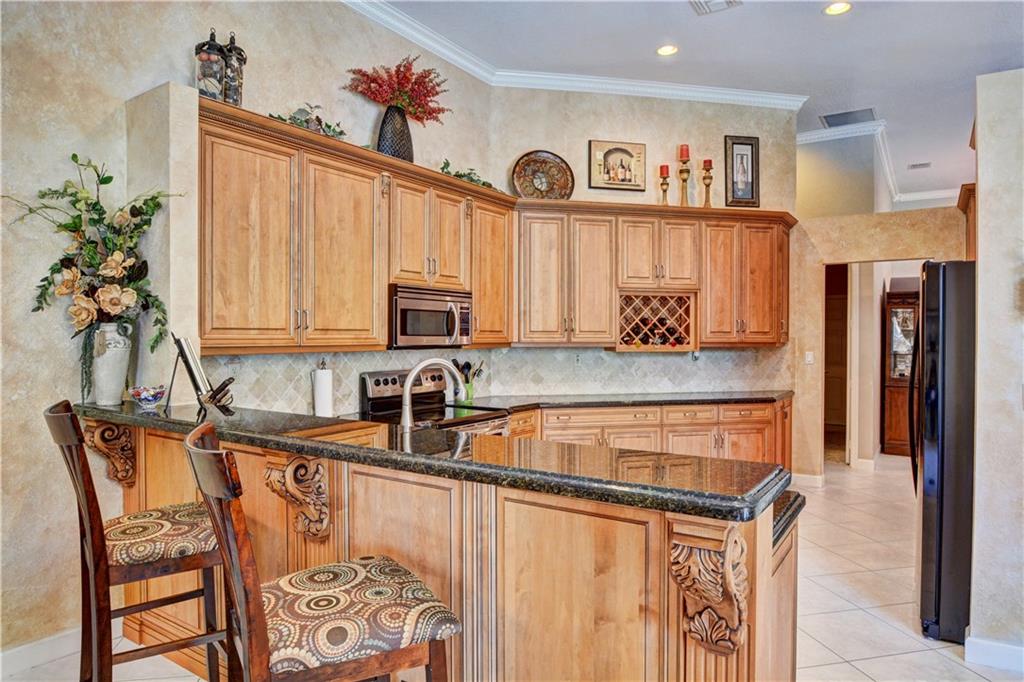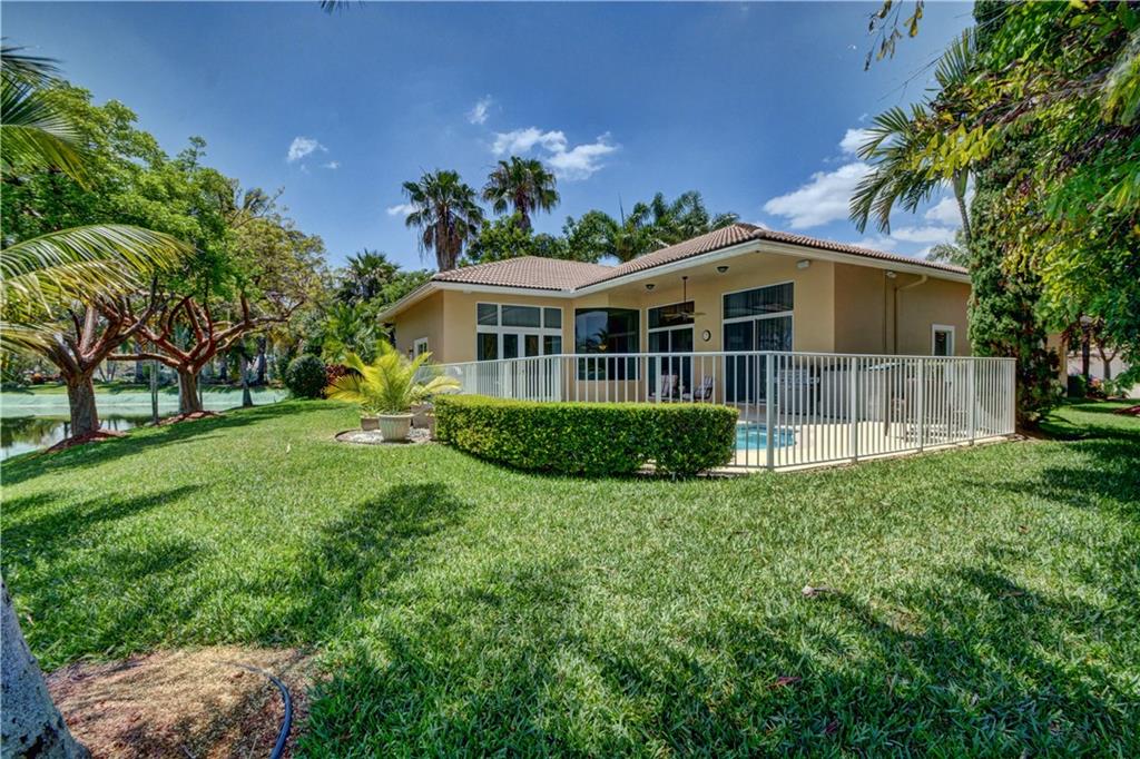 Immaculate home located on a beautiful water lot in Pelican Isle. This 5 bed/3 full upgraded baths home features: New Custom kitchen w/Maple Cabinetry,granite, New appliance package & serving bar w/built-in wine cooler & wine rack. Open floor plan overlooks the pool & amazing water views, His & Her walk-in closets. Large, open patio overlooking the well-manicured grounds. 5th room is a den/no closet. Lawn care included in the low maintenance. Sprinklers maintained by association & feed off of the lake.