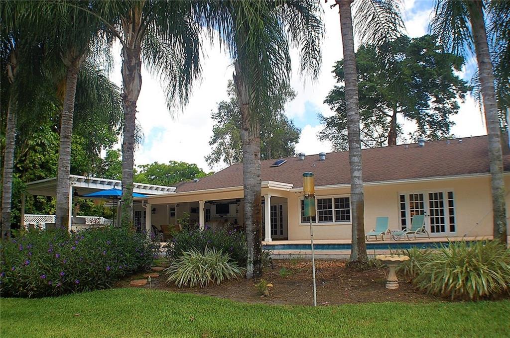 Breathtaking 4 bdrm/3.5 bath SF Salt wtr Pool Home on almost an Acre of beautifully landscaped property.Open&Spacious w/a Tropical fenced Backyard Oasis featuring summer kitchen,Bar & lots of entertaining space.Beautiful high wood beam ceiling in liv space,skylight in LR,plantation shutters throughout.Gourmet Kit w/top of the line appliances,2 ovens,granite counters,Upgraded bathrooms.2 Mstrs w/ full bathrooms .Concrete space on side of house for boat/RV parking.Pride of Ownership-No detail spared!No HOA