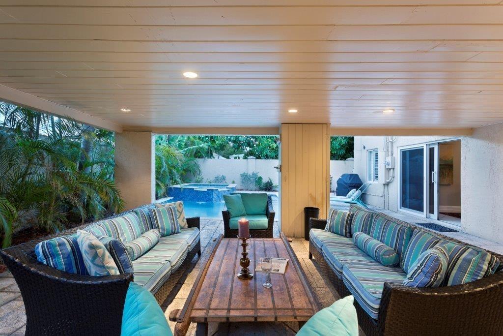 Located east of A1A and one block from public beach access. Hardwood floors & porcelain tile. Extensive renovation to kitchen and baths. Impact glass. Natural gas. Large covered patio with heated pool. Master bedroom with wood floors and walk-in closet. Master bath with spa tub, porcelain tile, dual sinks, glass shower. Four large bedrooms, two on each level. Upstairs media or office area. Furniture not included, but can be purchased separately for turn-key. Great investment with VRBO rental history. Ask for income details.