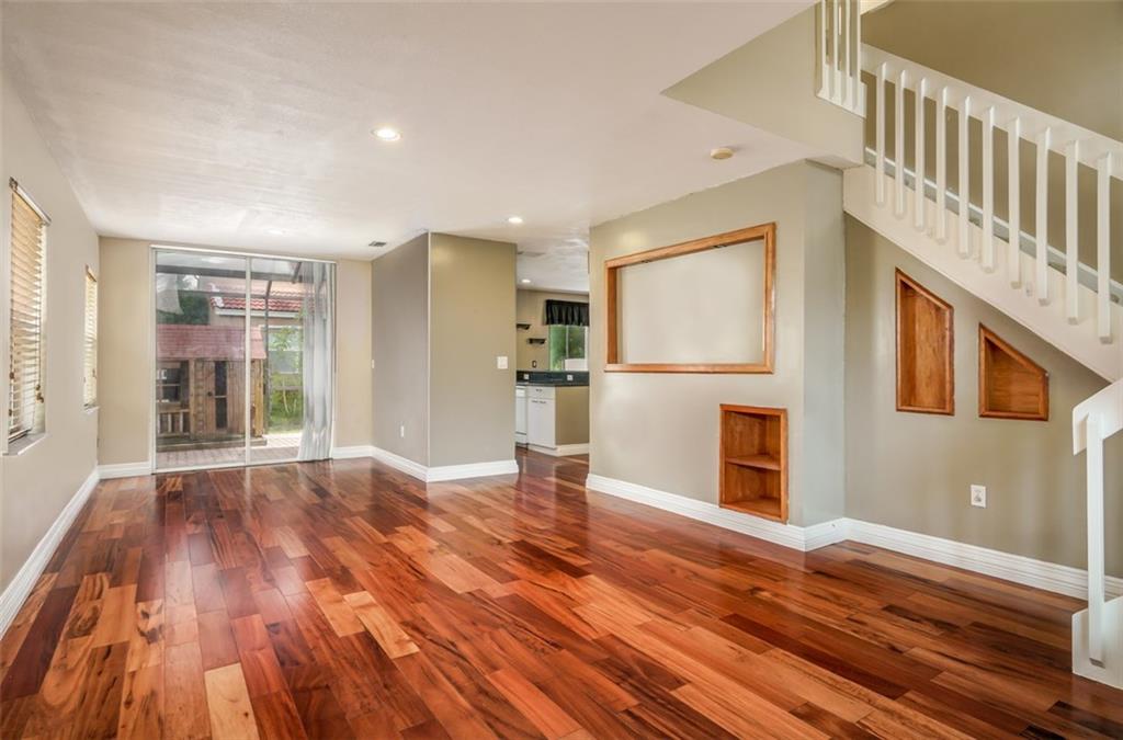Beautiful home in Glen Walk. Main living area has gorgeous wood flooring, built-in tv nook in the living room, recessed lighting, large eat-in kitchen and screened patio. On the 2nd floor you'll find a huge master bedroom with on-suite, over-sized tub, glass shower and custom walk-in closet. 2 more rooms for the kids + another full bath! Great schools, convenient to shopping, clean, quiet neighborhood with community pool and low HOA. Don't miss this one!! Accordian Shutters.