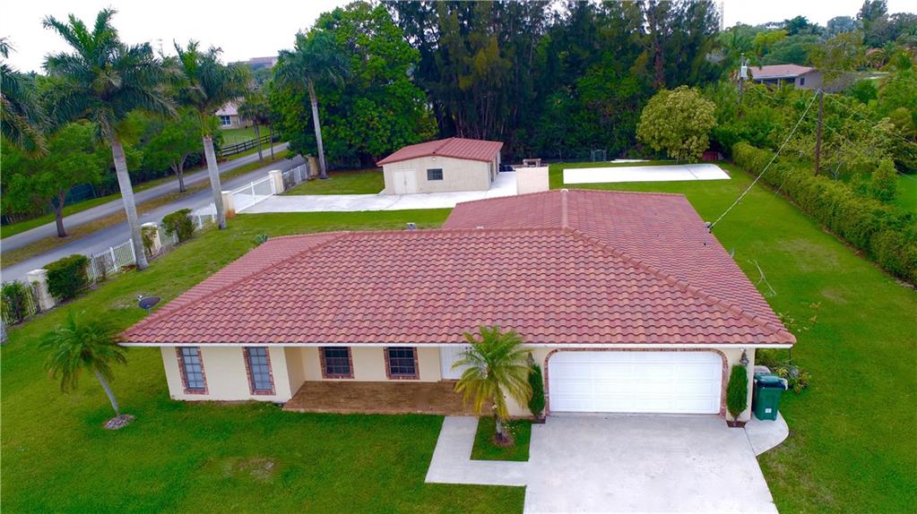 Country living with the luxury of city comforts, wonderful acre equestrian waterfront corner home. NO HOA. spacious open floor plan, wood floors,gated entry, renovated kitchen,beautiful family room with gorgeous fireplace with pool view. New roof in October 2010 and fully fenced in 2013. Second building with water and electricity that can be used as accessory building, office, storage or a Barn! Bring your horses-boat-RV... A+schools! Less than 3 minutes from Weston & Southwest Ranches best location.