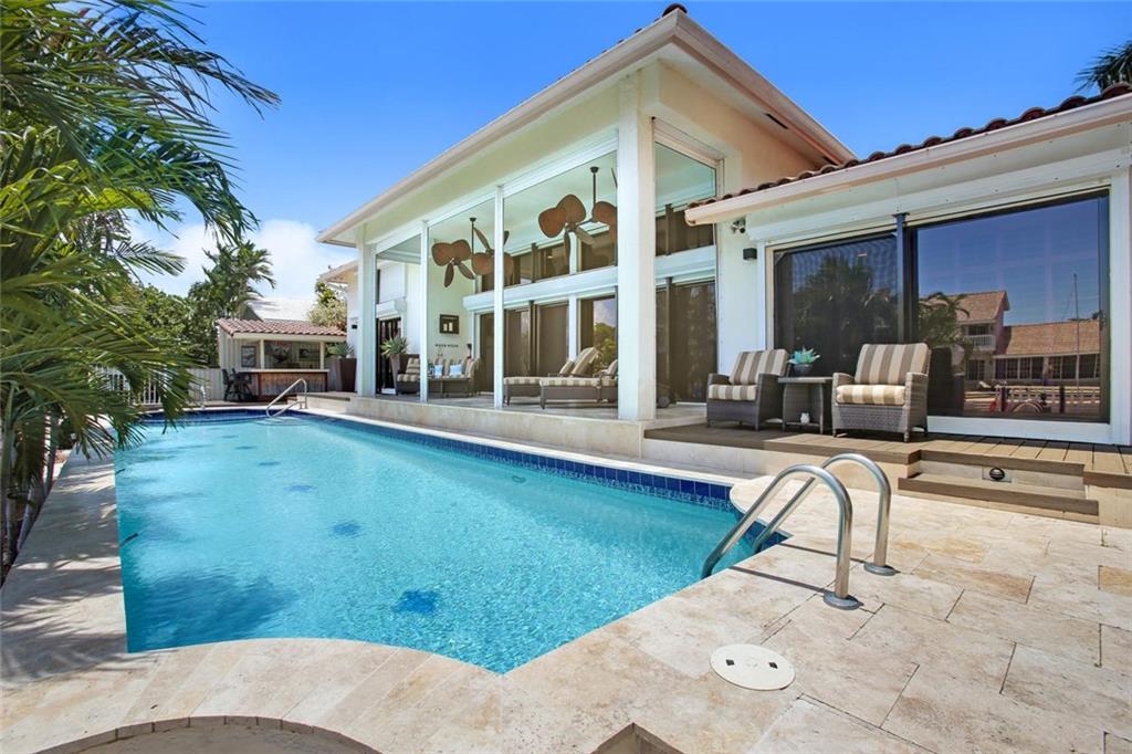 Stunning indoor/outdoor 3 bed, 2 bath waterfront home, located close to the beach. This designer home features custom woodwork, marble floors, wood shutters & a wall of glass doors for natural light. Open floor plan, gourmet kitchen, stainless appliances, granite & glass countertops. 14' ceilings, large living, dining & entertaining areas. Luxurious master bedroom suite and steam shower. Brand new air conditioner. Private 80' dock, wide canal, boat lift, pool, summer kitchen, lighting & sound system.