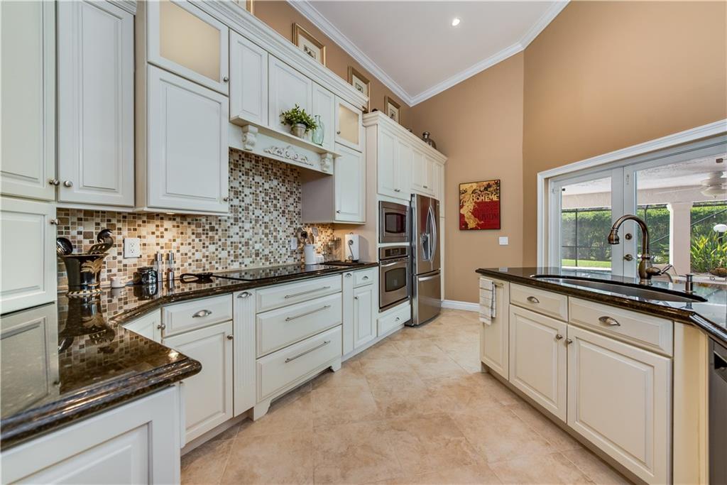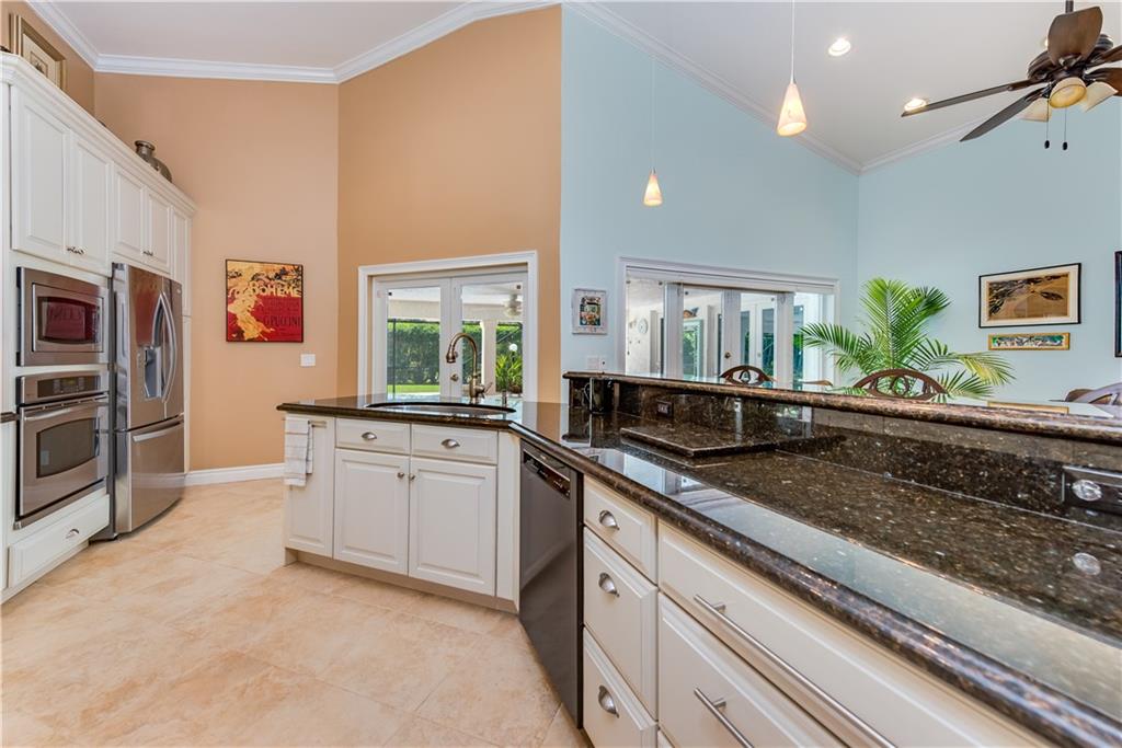 beautifully renovated 4/3 pool home. open concept kitchen,SS chefs appliances."A" school district. New roof (2009),New HVAC (2014) Hurricane windows and doors throughout. W/D +additional fridge. Water purification system.Removable child gate for pool. Master bath new, his &hers sinks,Alarm system, country club community, golf, tennis,gym,2 restaurants.HOA fees include CC membership $347 qrt. Many items included in sale, lighting and some furniture negotiable. see brokers remarks for showing.
