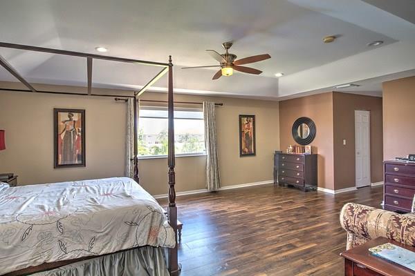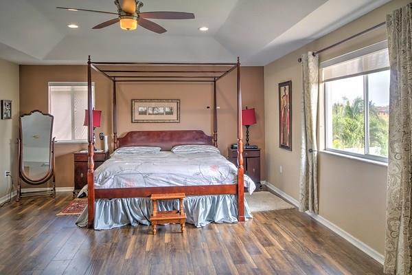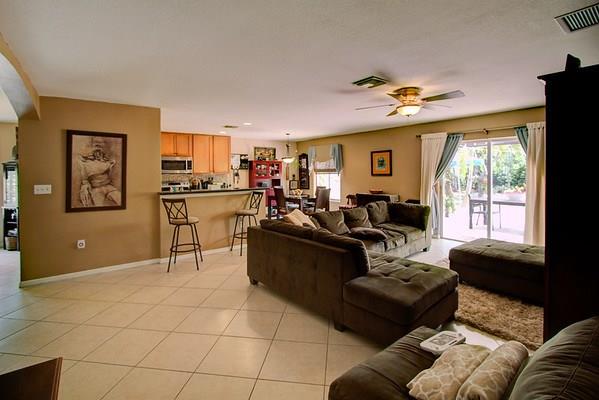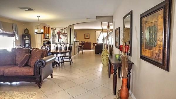 SUPER immaculate 5/3 PLUS sixth used as a Den/sitting are in the master bedroom! Updates include: laminated wood floors and ceramic tiles through out, Granite counters and backsplash, stainless steel appliances and 42" wood cabinets. Backyard is perfect for entertaining with a covered patio, pavers , lushly landscape, and sits on private lot backed to a canal! This house is turn key--must see!
