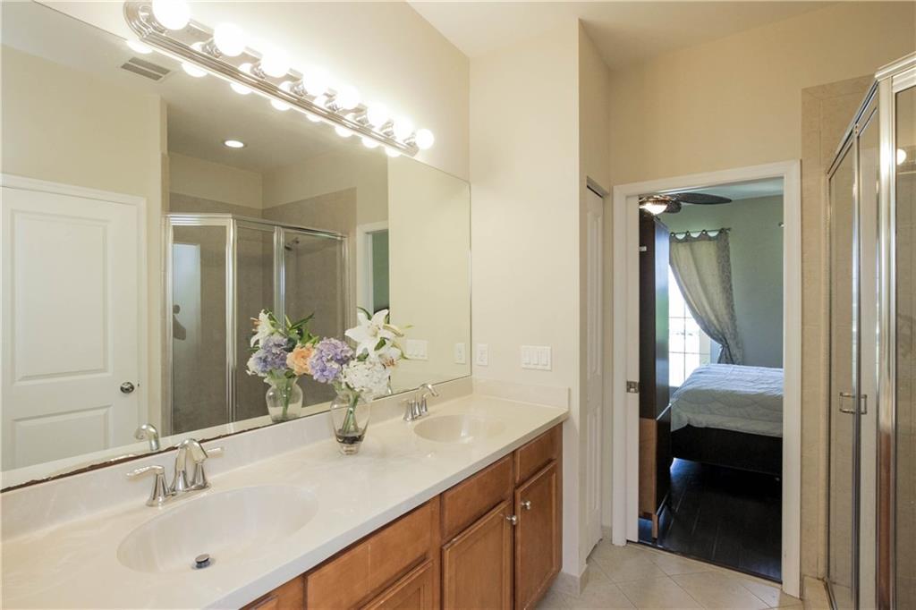 Beautiful newer construction town home with 2 master suites in Monterra. Upgraded unit with lake view, granite counters, SS appliances, dark wood floors, impact windows, 2 car garage with full size driveway for extra parking. Enjoy the gorgeous lake view from your porch or master BR balcony. Large walkin closets in both bedrooms. Each bedroom has it's own ensuite bathroom, plus half bath downstairs. Gated community w/ resort style clubhouse, 2 pools, gym, tennis/basketball courts, dog park, and more!