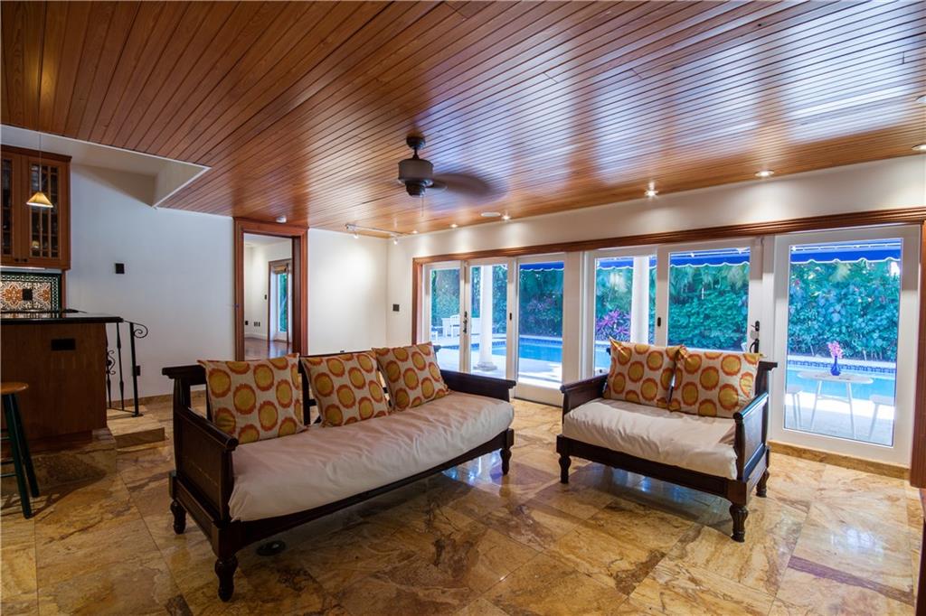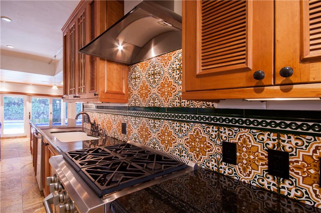 Renovated in 2007 including Plumbing, Electrical & Windows 3/3 Split Plan - Gourmet Gas Kitchen With Granite Wood Cabinets & High-End Stainless Appliances – Fireplace - Gas Generator - Five-inch baseboards, travertine, and hardwood finished flooring - solid wood doors, cedar wood- closets, LED recess lighting -designer light fixtures - wrought iron details and hand rails - Bathrooms feature hardwood cabinetry, granite tops, stone wainscot and replaced plumbing fixtures. - Coral Stone Tile Around Pool