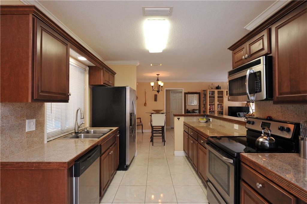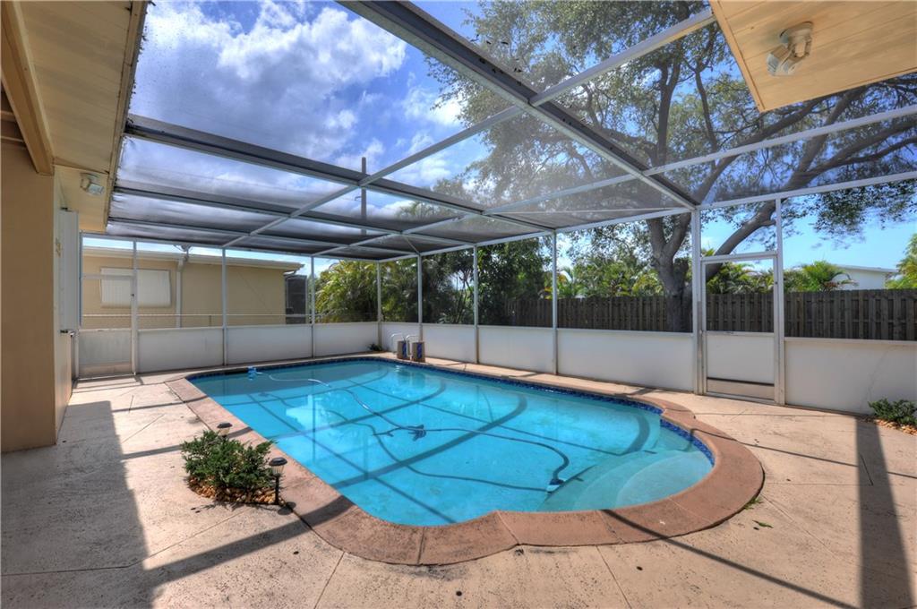 Newly updated one story 3 bedroom, 2 1/2 bath pool home with large fenced yard. Open floor plan leads out to your screened pool with a covered lanai. Crown molding throughout. Kitchen has granite, dark wood cabinetry and stainless steel appliances.All bedrooms have wood flooring. Impact windows and accordion shutters. Newer Trane A/C unit. Two car garage with circular drive. Large Utility/ Laundry room (Air-Conditioned) with newer washer/dryer. Security system. Close hospital, major roads, shopping.