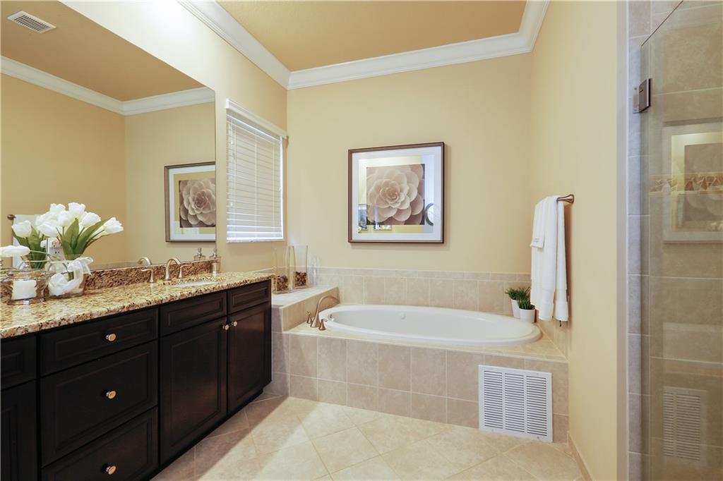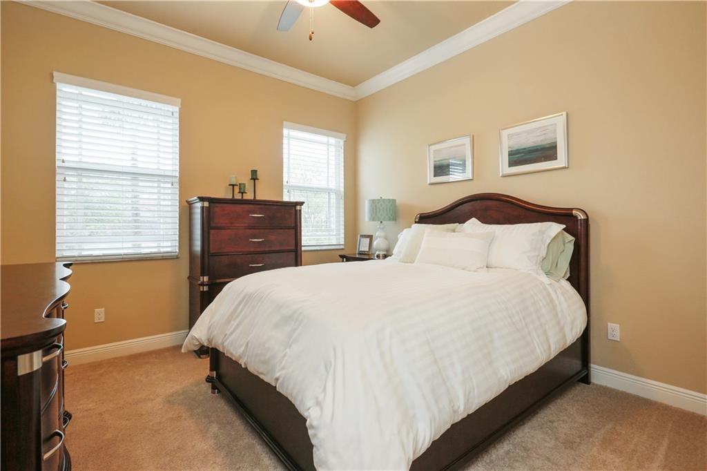 Amazing home loaded with upgrades in cul-de-sac lot. Split floorplan w/ french doors leading to the extended paver patio w/ serene lake views. Gourmet kitchen w/ granite countertops, tile backsplash, gas stove & double ovens. Crown molding throughout, custom closets, tankless water heater, designer lighting fixtures with dimmer switches. Impact windows (w/treatments) & doors. Shows like a model! Miralago has plenty of amenities such a resort style pool, state-of-the art fitness gym, playground area.