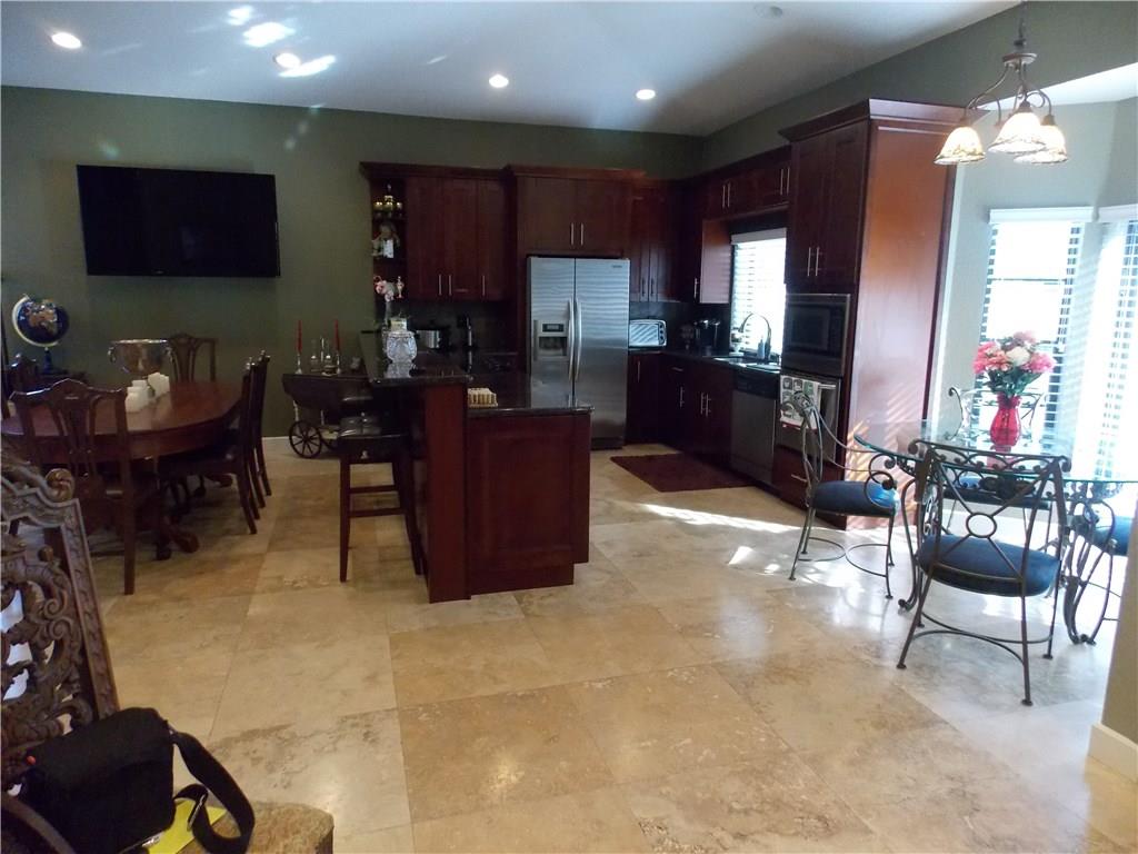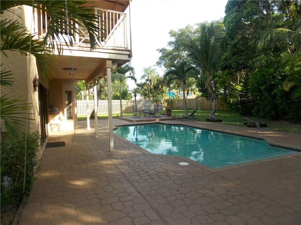 This home has it all, no expense has been spared with 24" travertine tile on the first floor the kitchen is updated with granite and stainless steel appliances, one bedroom and bath on the ground floor updated bathroom and laundry room with a closest for extra storage. Upstairs master bedroom has balcony overlooking the pool with huge walk in closet and large master bath with separate tub and shower and 2 additional bedrooms and bath. The home is fenced with new fencing and a driveway that can hold 8 cars