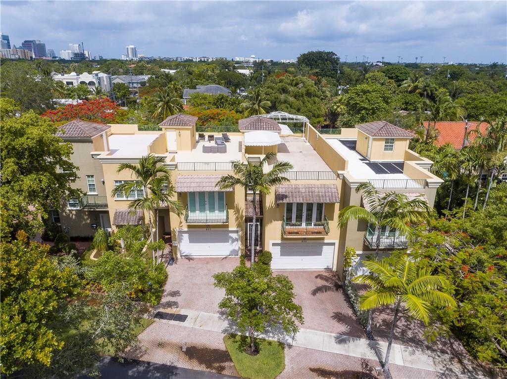 Stunning 2-story townhome with roof top patio, screen porch and private 40' lap pool situated in a secluded, fenced garden. Sought-after Victoria Park 3BR/2.5BA corner unit boasts 2597 SF of living with the most requested features; an open floor plan, granite counter tops, stainless appliances, built-in wine bar, hardwood floors, a sizable master with luxury bath and 2-bay garage. Situated on a great street and all within a short distance to shopping, the beaches and Las Olas Blvd.
