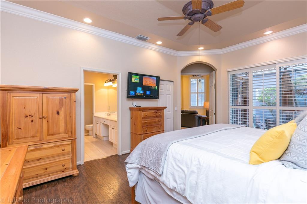 IMMACULATE & MOVE IN READY! Over 2,500 sq. ft. of living area in this 4/2.5 + loft home. It's just a short walk to the clubhouse where you can enjoy the resort style pool, exercise room, tennis, basketball, kids playground & more! Features include dramatic vaulted ceilings, spacious family room, breakfast area, formal dining, master bed + 1 bed downstairs, 2 beds are upstairs + a loft area, freshly painted interior, crown molding, & impact windows (upstairs). HOA includes landscaping & exterior painting.