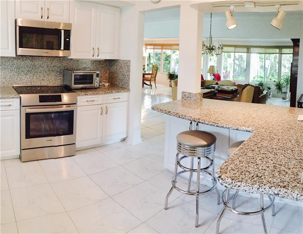 Coral Ridge Country Club Estates. Corner home in move in condition. Split floor plan. Master bedroom has 2 walk-in closets. White kitchen completely remodeled with induction stove and convection microwave. Built-in-entertainment unit with Bose surround sound. Wet bar in dining room. Impact windows and doors. Lush garden with private pool and backyard area with a tiki area! Walk to beach, restaurants and shops. Roof and stainless steel appliances under warranty.