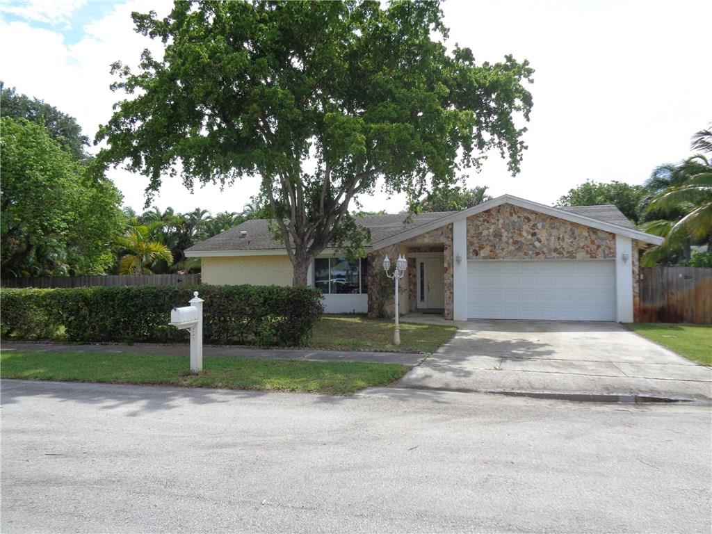 Charming California Style 3/2 home on CORNER, OVERSIZED, CUL-DE-SAC LOT in Palm-Aire Village. Lovely covered patio leading to open 18x36 heated & cooled, saltwater Pool & Spa! Home features a split bedroom plan. Sunken living room with beautiful fireplace and custom stone wall. Crown molding. Kitchen is open to living area. Impact Glass on front window & door. Garage door & side garage door is Hurricane proof! Roof replaced in 2005. A/C replaced with 5 ton unit. Great location between Turnpike & 95.