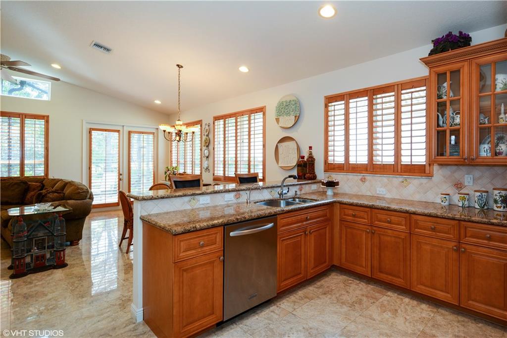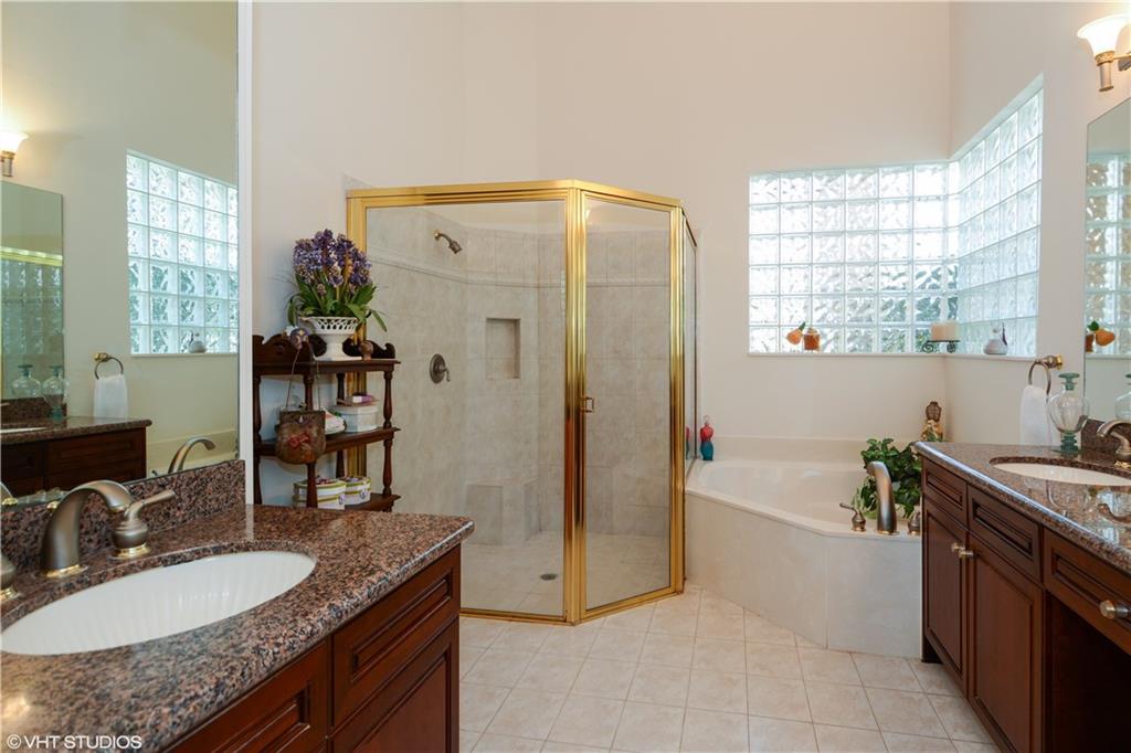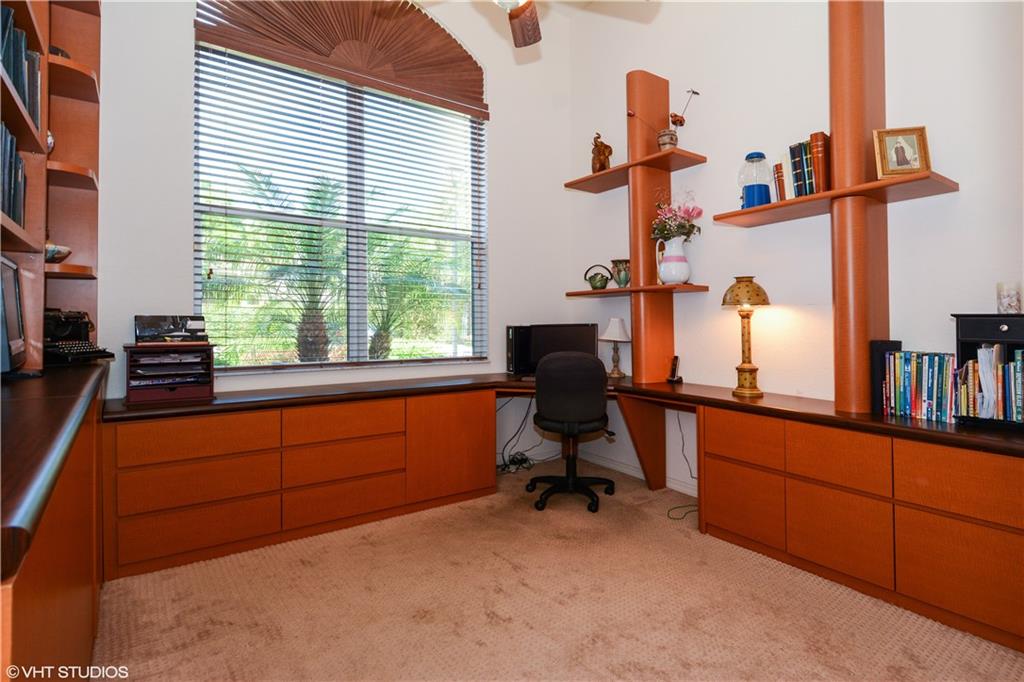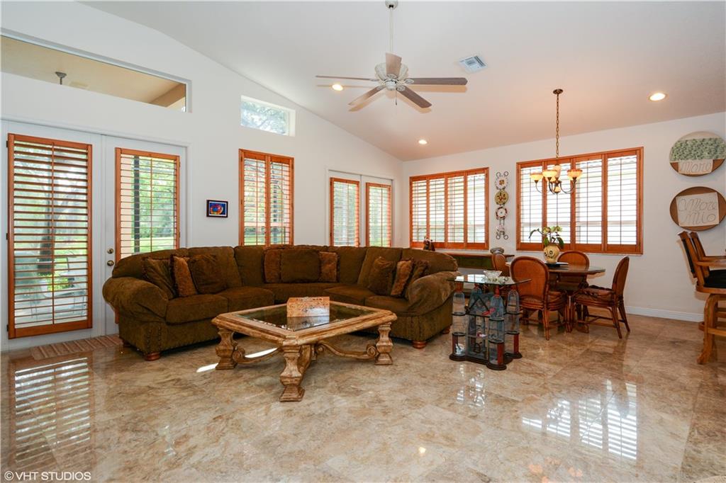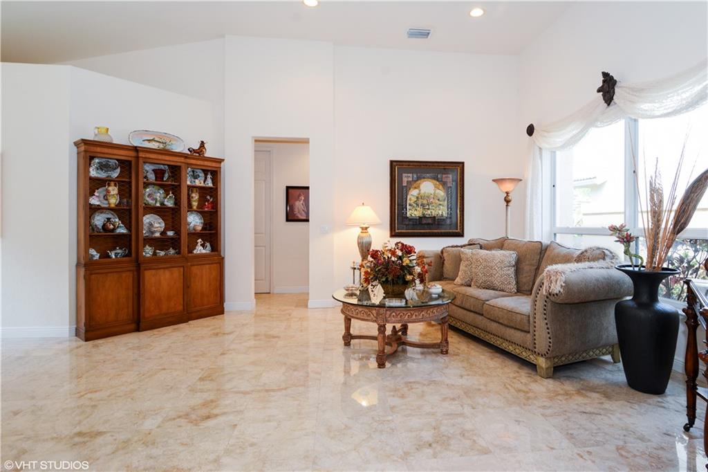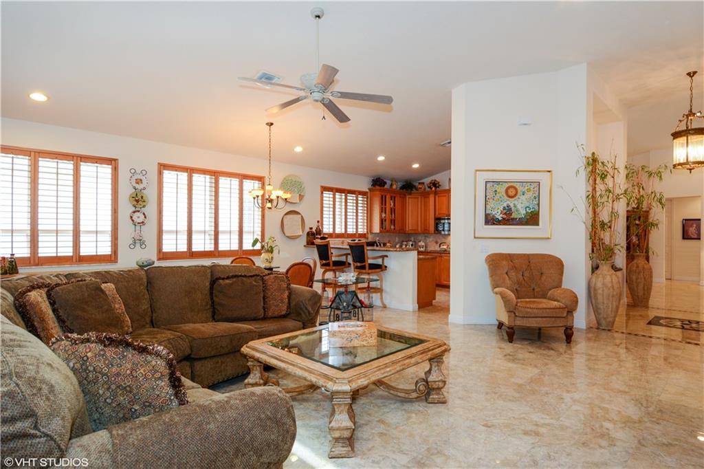 Impeccably Maintained. Upgraded features include Marble flooring in all living areas, plantation shutters, screened in oversized patio, Hunter Douglas shades, custom closet organizers, updated kitchen with granite counters and stainless steel appliances, double oven. Third bedroom features built in office storage, but can easily be removed if necessary. Exclude Dining Room and Foyer Chandelier. Community features resort style pool, fitness center and much more! Hoa fee incl. landscaping and painting ext.