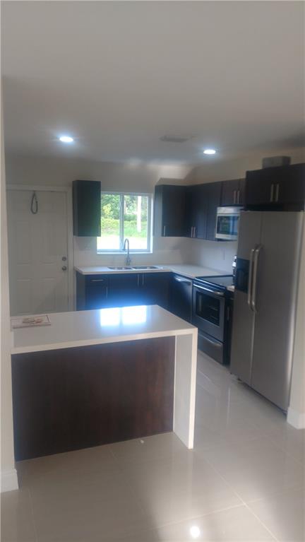 New construction, beautiful 3 bedroom 2 bath in desirable Fort Lauderdale area. Upgraded kitchen, Quartz countertops, and waterfall bar. Upgraded bathroom and custom wood cabinets. Upgraded stamp concrete driveway. Hurricane storm shutters. All stainless steel kitchen appliances. Washer and dryer included. Upgraded tile 24 x 24 throughout whole house. Walk in closets. Must see, won't last!!!!
