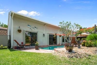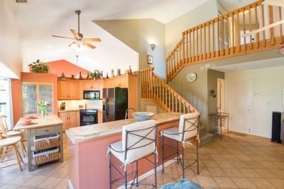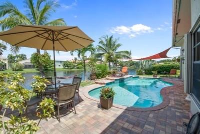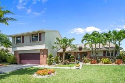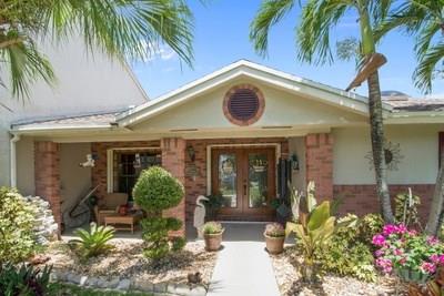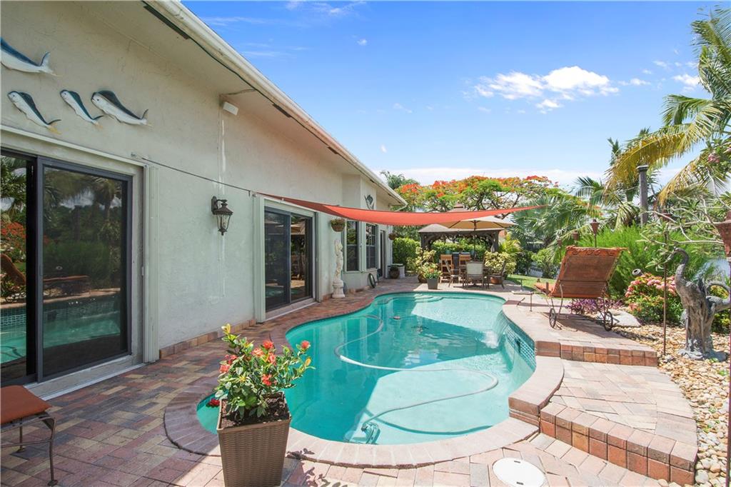 WOW, LARGE WATERFRONT PIE SHAPED LOT, 4 BEDROOMS, MASTER BEDROOM DOWNSTAIRS, 3 BEDROOMS UPSTAIRS, CUSTOM MASTER BATHROOM WITH SPA JET TUB, AND SUPER LARGE SHOWER, LARGE CLOSET, GLASS CUSTOM DOUBLE DOOR ENTRY, SLIDING SHUDDERS, SALT WATER POOL, WITH NEW SALT WATER MACHINE AND CHANGING LIGHT COLORS FOR POOL, GAZEBO, OUTDOOR ISLAND WITH BAR-B QUE, KITCHEN ISLAND, REAL WOOD FLOORS IN BEDROOMS, TILE IN DOWNSTAIRS, CARPET STAIRS, SHED, FREEZER AND REFRIGERATOR IN GARAGE, SLIDING SCREEN DOOR IN GARAGE. MINT CON