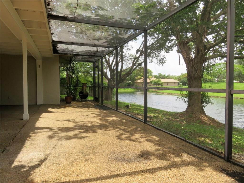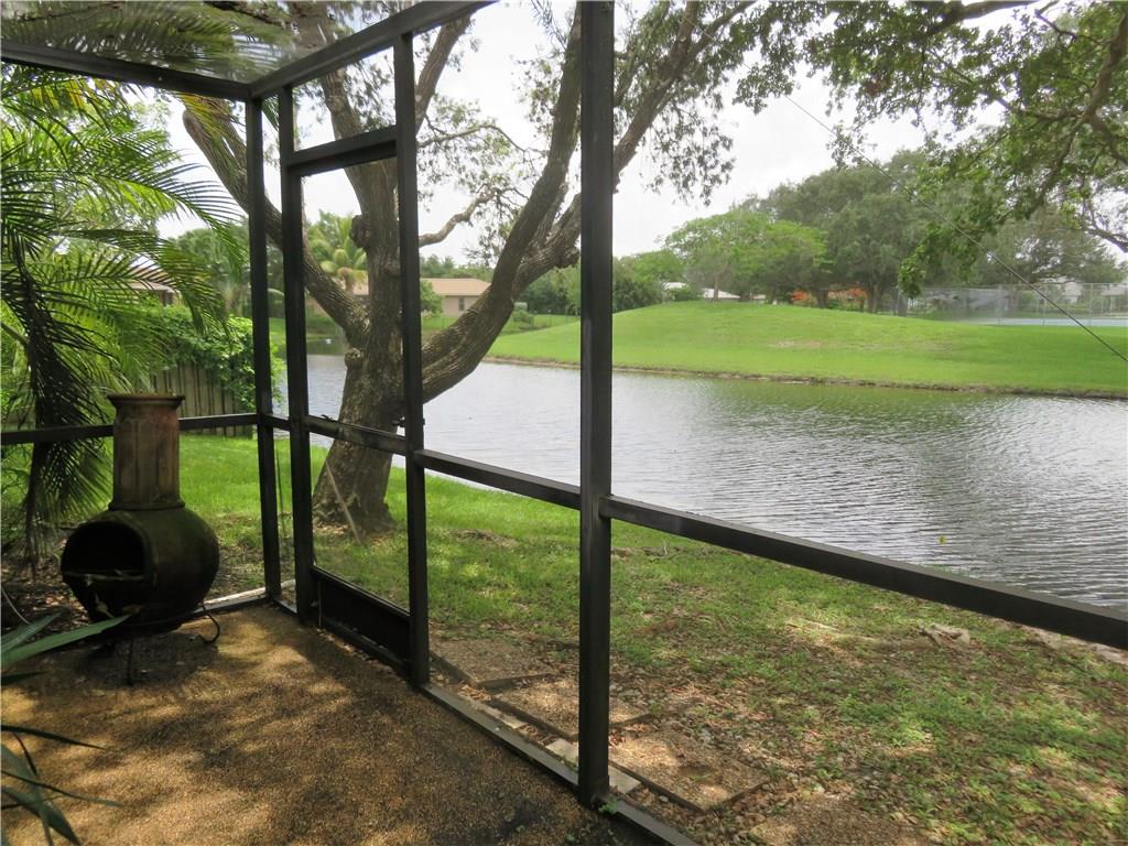 This beautiful upgraded home located in well sought Jacaranda Lakes features a private front courtyard. Front door opens to an entry formal dining/living room leading to a brand new kitchen with wood cabinets, SS appliances and granite countertops overlooking the family room & views of the lake from every window. Great split plan layout. Porcelain tile throughout & wood floors in bedrooms. Upgraded bathrooms. Plenty of storage & natural light. Screened in patio on serene lake. Huge private fenced in lot.