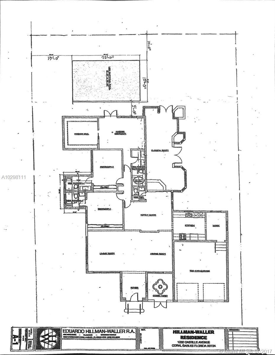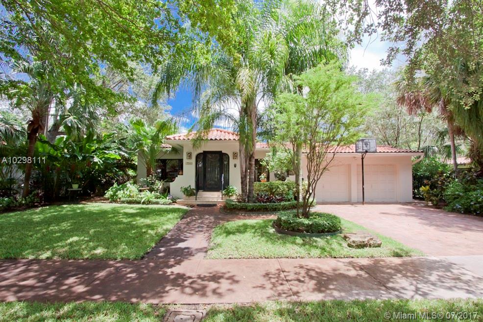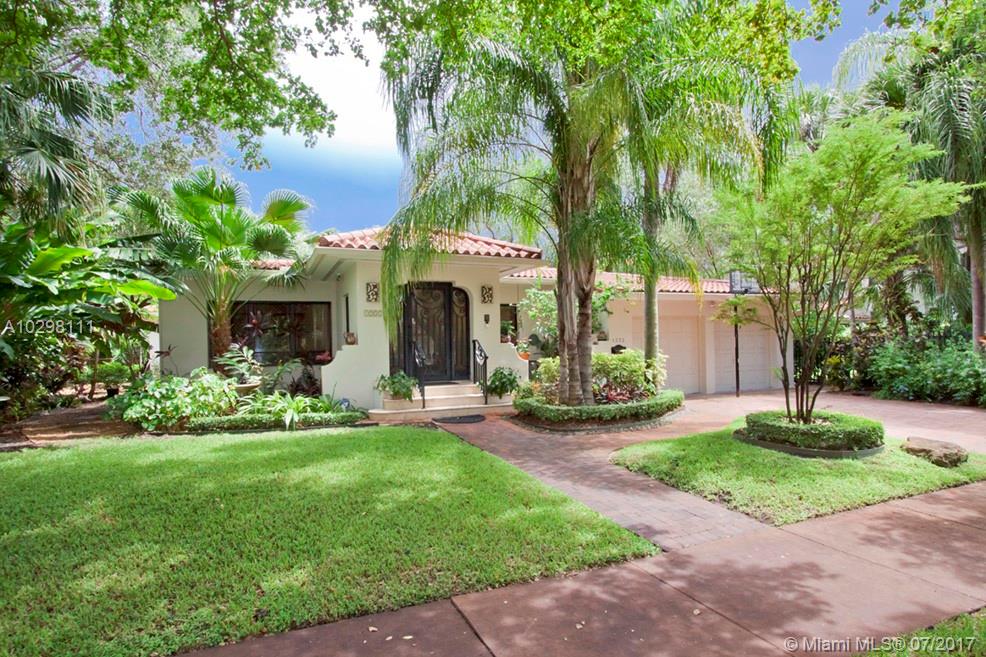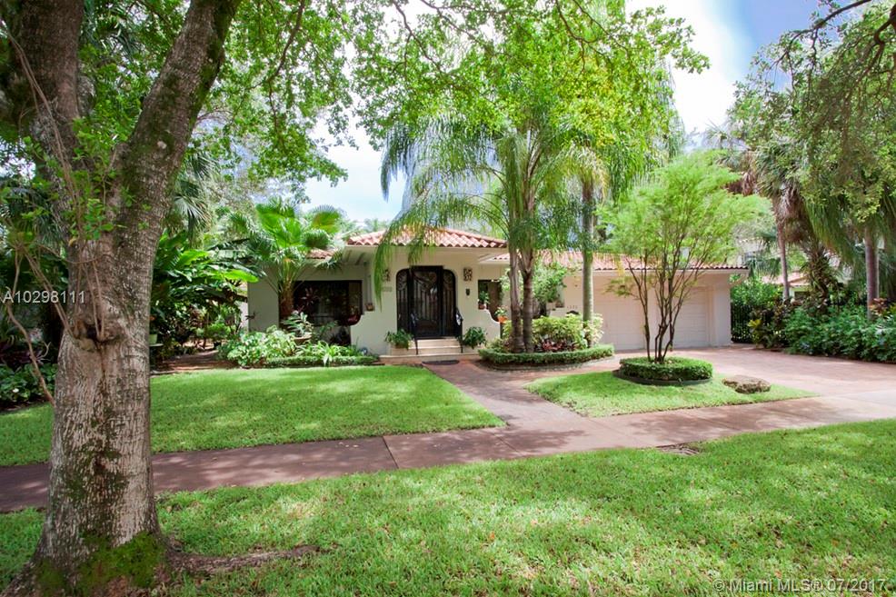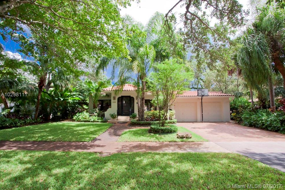 Gracious home located on tree-lined Castile Ave is walking distance from the Granada Golf Course and Coral Gables Country Club. An elegant foyer leads into a spacious marble-floored formal living and dining great room area. An additional family room and adjacent bright and inviting skylit sunroom with window-lined walls are the perfect generous space in which to entertain. Off the family room, the kitchen features wood cabinets and a breakfast nook with a bay window overlooking the meticulously maintained gardens. The master suite boasts a huge walk-in closet and french doors that open onto a wooden deck where you can enjoy the lush backyard and jacuzzi. Two car garage, large lot with room for a pool and an excellent location. SqFt per owner/architect.