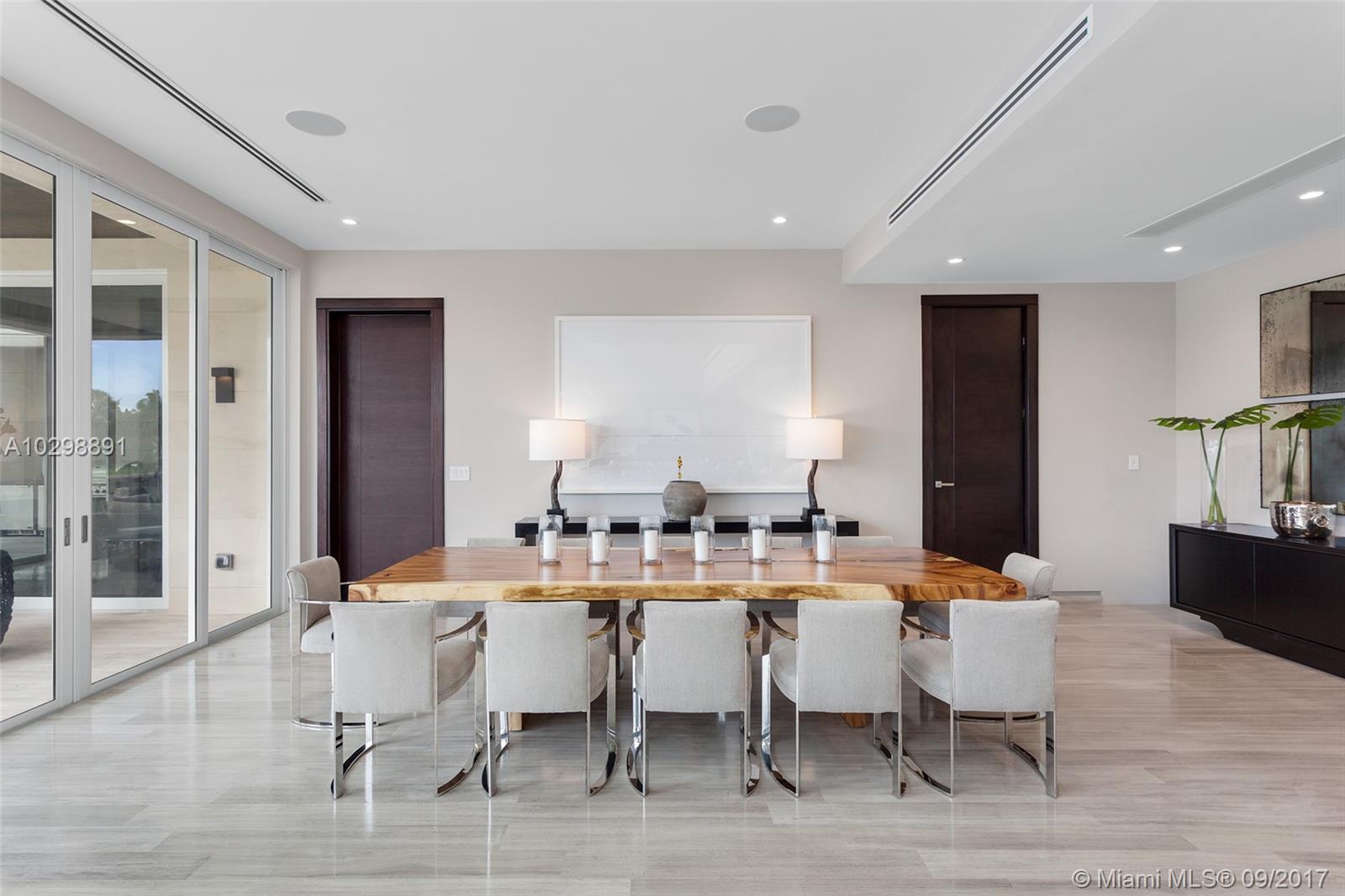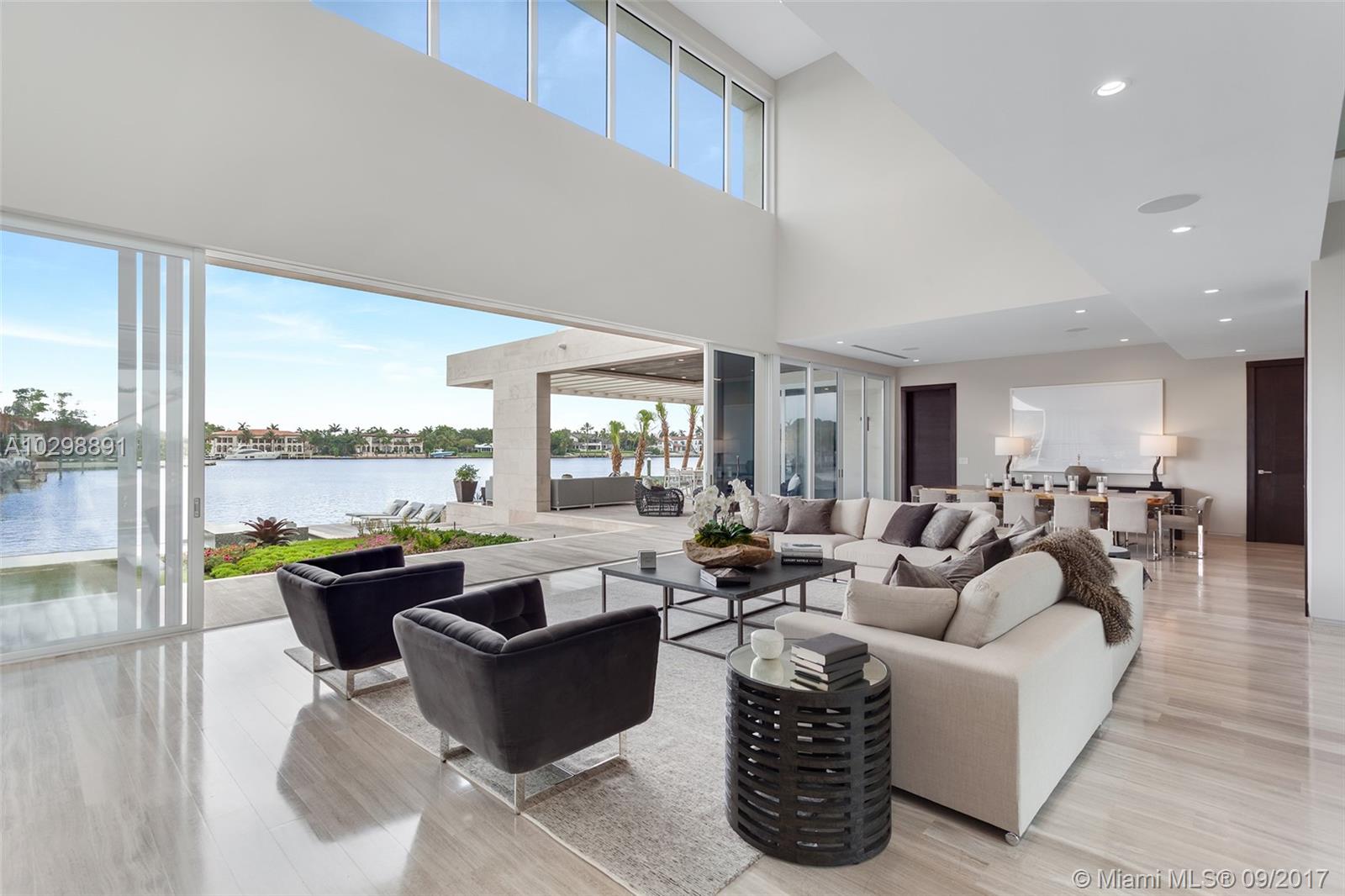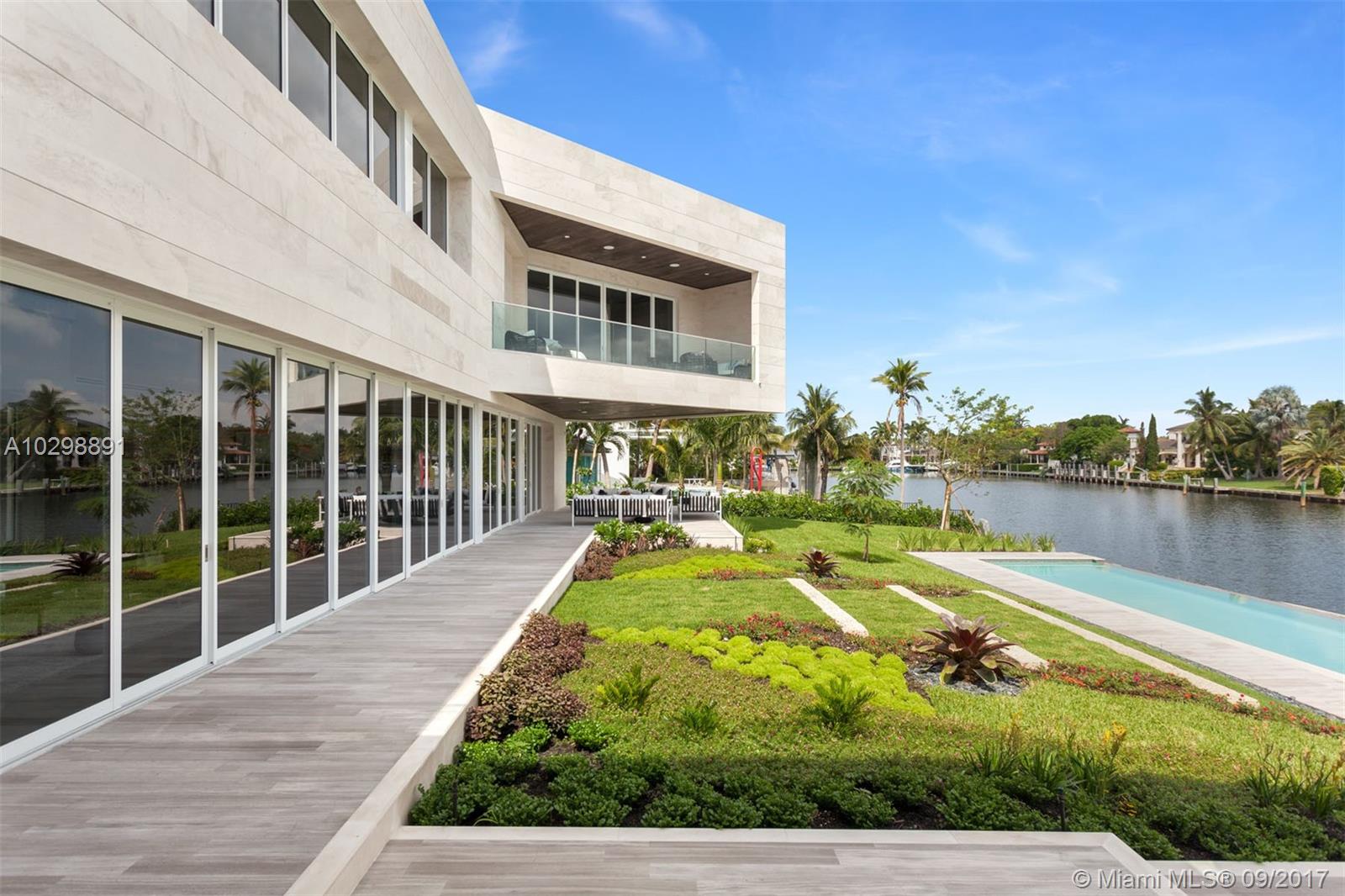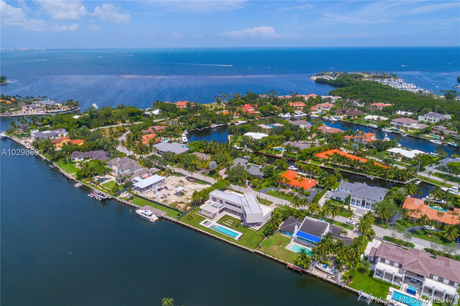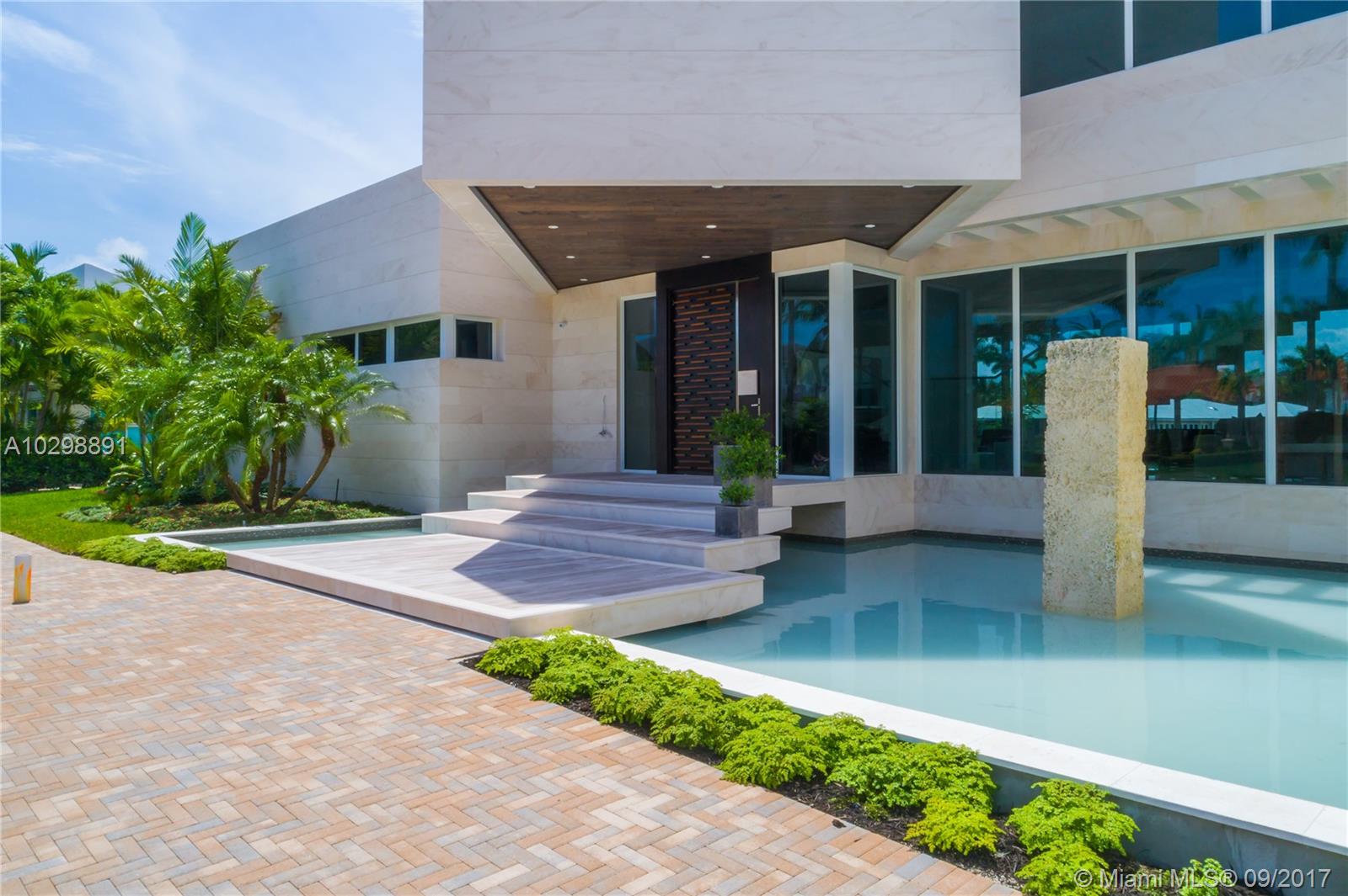 Groundbreaking entrance of modern architecture into Coral Gables! Iconic estate w/171 Sq Ft of waterfrontage with direct ocean access is uniquely positioned to allow for wide open water views. Exterior walls covered with natural stone from Spain & custom doors handmade from Ecuadorian solid wood contribute to the luxurious allure. Floating Master Suite & second-floor rooftop terrace provide stunning views. Home boasts an open layout, elevator, gourmet kitchen w/Italian Calacatta marble & Miele appliances, infinity pool & spa & new sea wall. The property also comes equipped with a low voltage wiring system to allow for full smart home technology. Additional features include, 3 car garage & opportunity to build a large dock, offering direct access to the Atlantic Ocean for your luxury vessel
