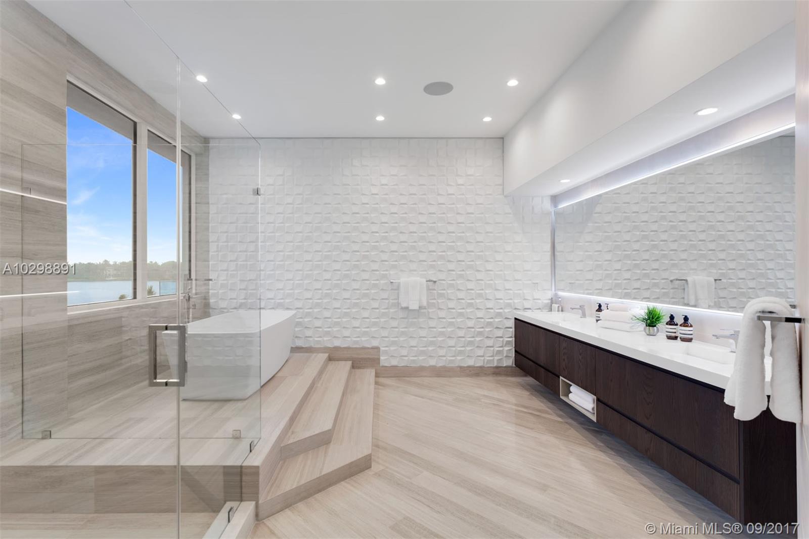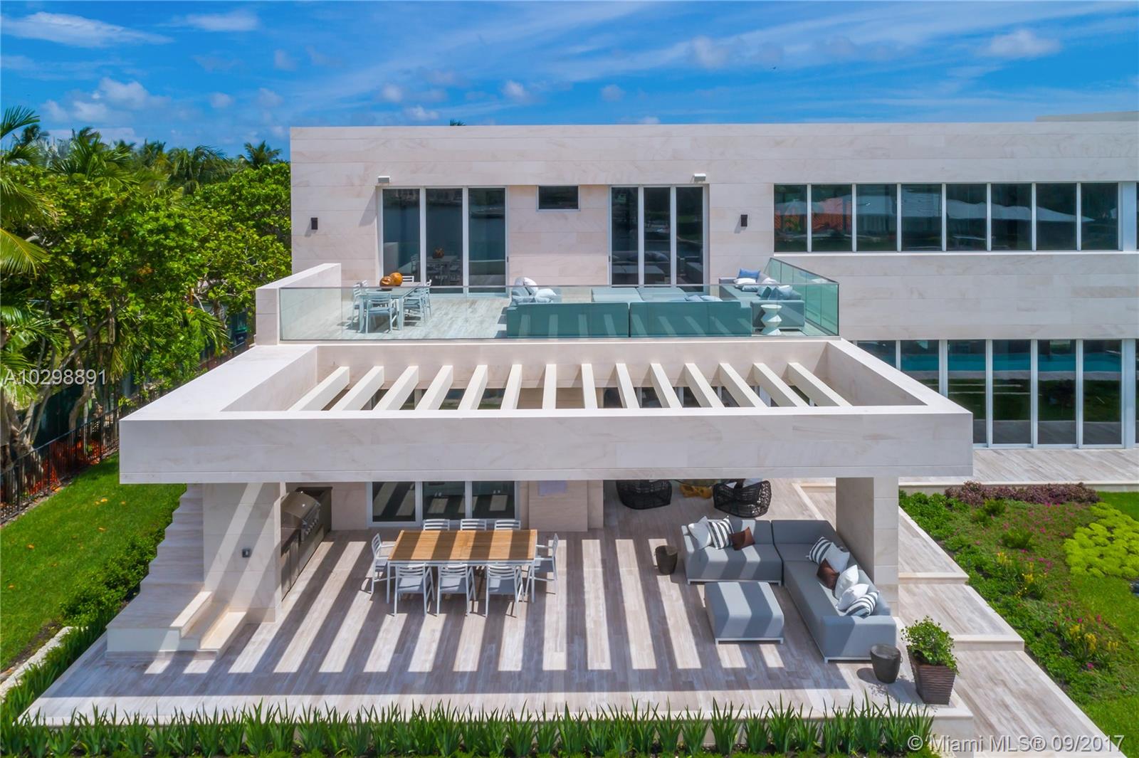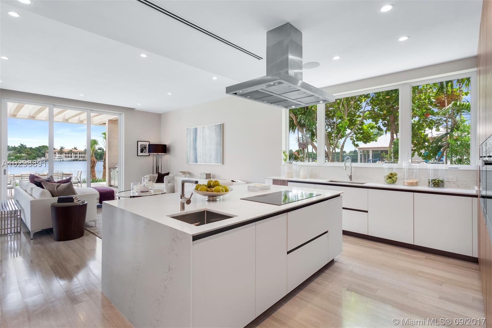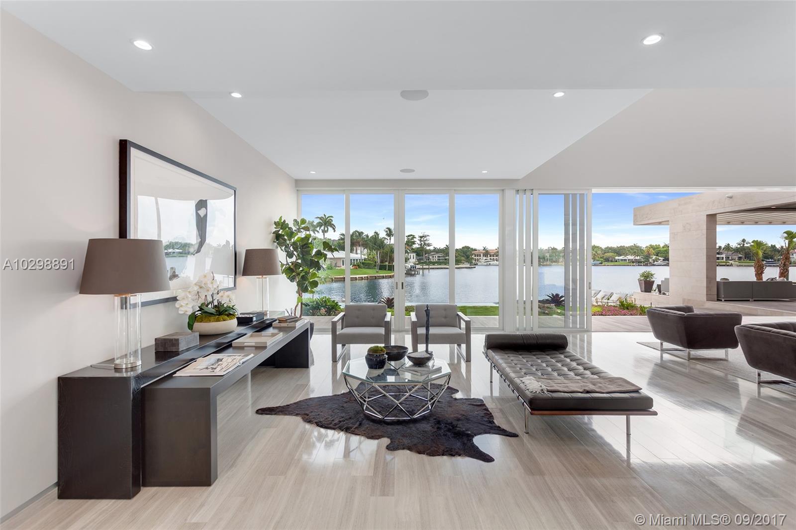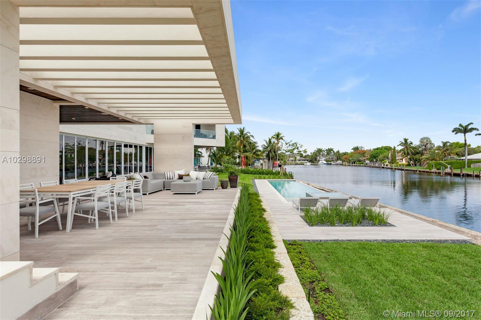 Groundbreaking entrance of modern architecture into Coral Gables! Iconic estate w/171 Sq Ft of waterfrontage with direct ocean access is uniquely positioned to allow for wide open water views. Exterior walls covered with natural stone from Spain & custom doors handmade from Ecuadorian solid wood contribute to the luxurious allure. Floating Master Suite & second-floor rooftop terrace provide stunning views. Home boasts an open layout, elevator, gourmet kitchen w/Italian Calacatta marble & Miele appliances, infinity pool & spa & new sea wall. The property also comes equipped with a low voltage wiring system to allow for full smart home technology. Additional features include, 3 car garage & opportunity to build a large dock, offering direct access to the Atlantic Ocean for your luxury vessel