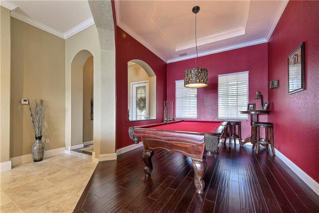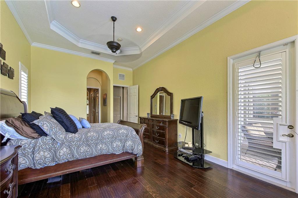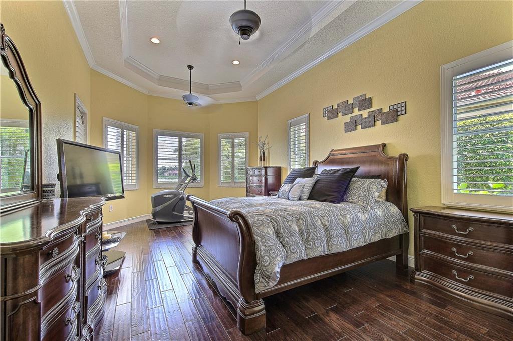 AMAZING Waterfront Luxury Dream Home w/Spectacular Views! Upgraded 5 Bedrms + Loft w/4 Baths Home. Back Patio Perfect For Entertaining, Heated Pool/Spa! Custom Kitchen w/Granite Counters, Island, Double Oven, Wine Fridge, Stainless Steel Appliances, Newer A/C Units, Volume/Tray Ceilings, Plantation Shutters, Master Suite w/Sitting Area, Newer Wood Floors & Tile, His & Her Master Bath, Accordion Shutters, Pre-Wired For Generator, Guard Gated, HOA Includes Lawn/Cable, Alarm, Eagle Trace Tennis. A Must See