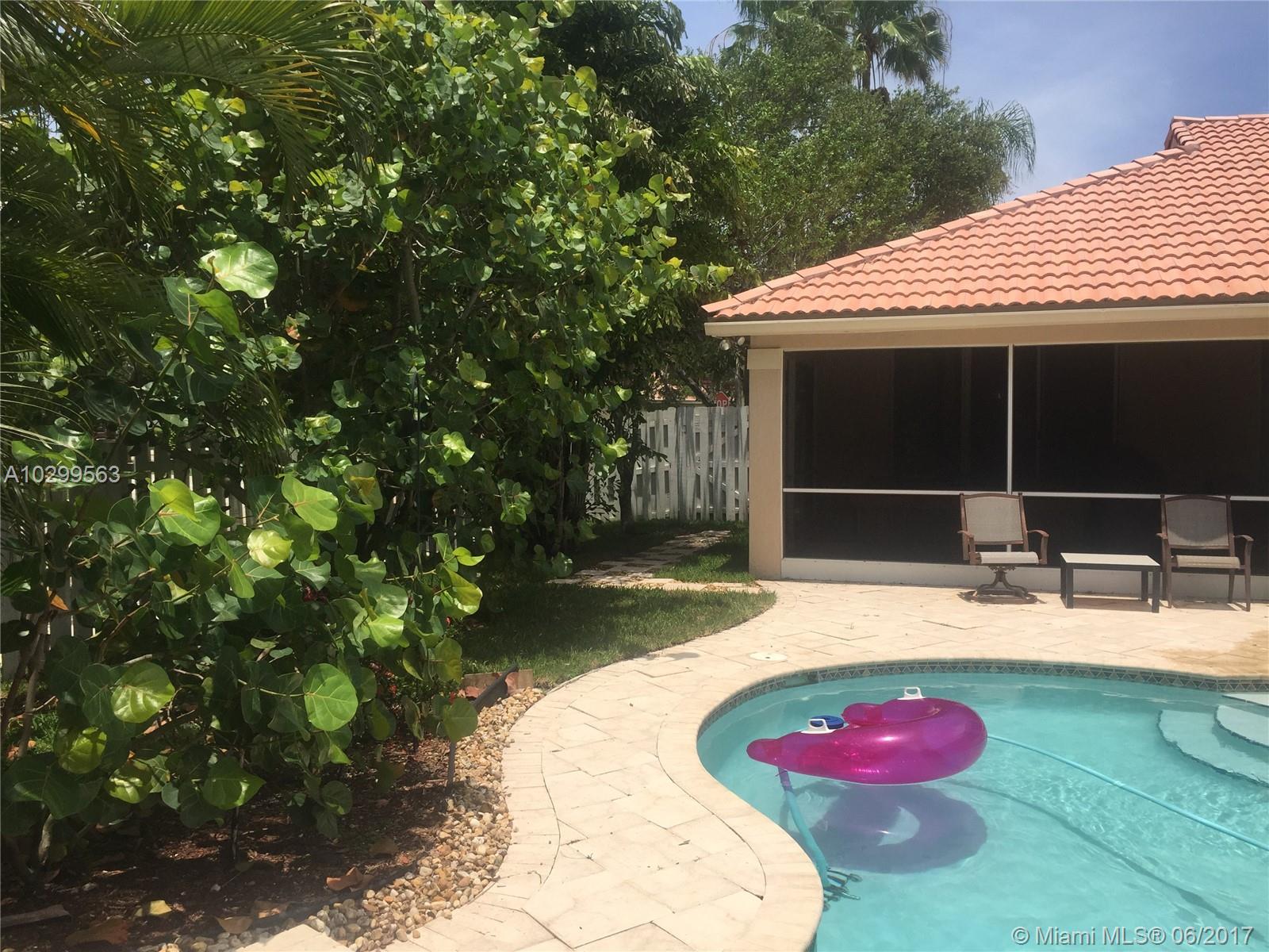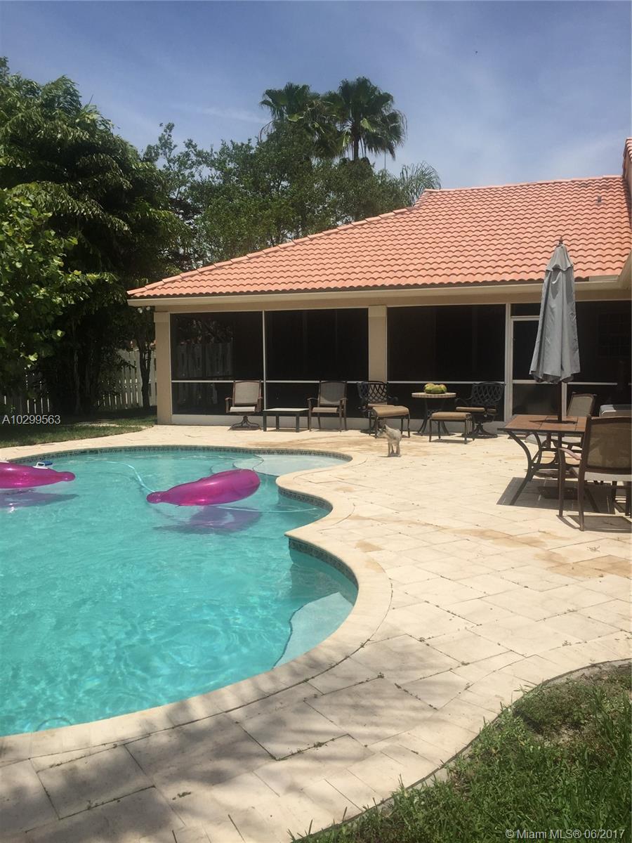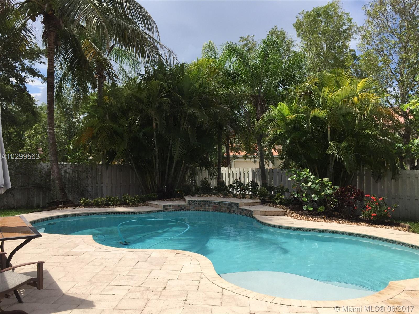 Beautiful home in one of Weston's most desirable communities, The Lakes. Home is on a corner lot, beautifully landscaped, with a fenced in gorgeous pool, in a private and quiet area. Has a large screened in patio with a beautiful hot tub conveniently located outside the master bedroom. All stainless kitchen appliances brand new & warrantied. AC and water heater newer & warrantied. In walking distance from Publix shopping center & fabulous A+ schools - Eagle Point, Tequesta Middle, & Cypress Bay.