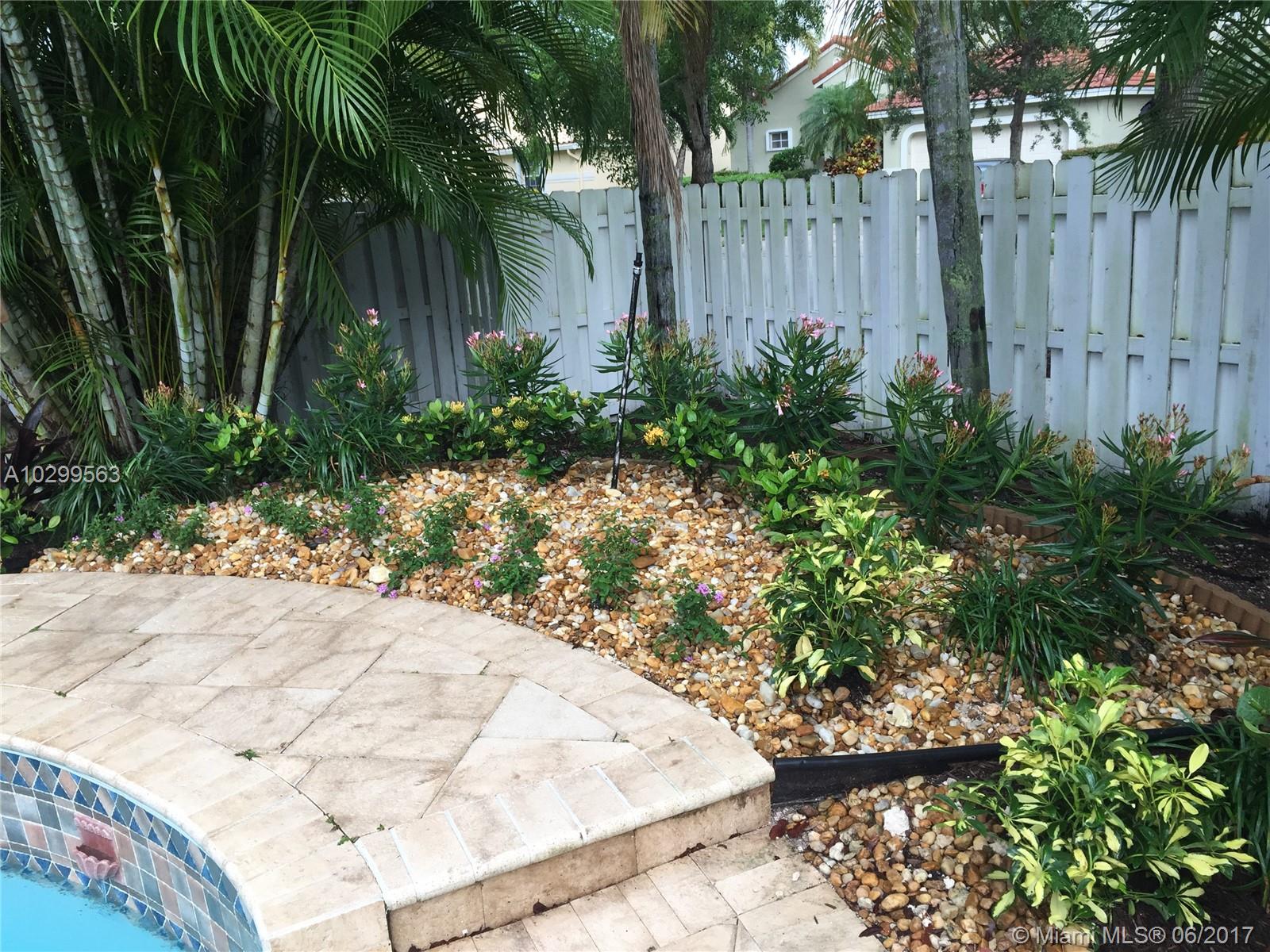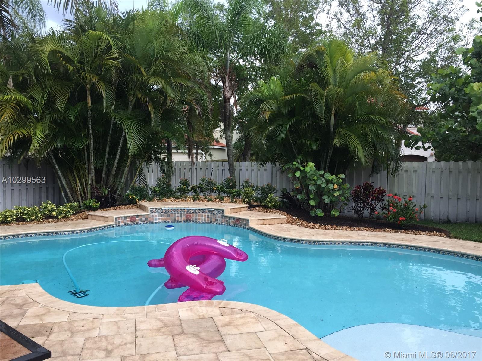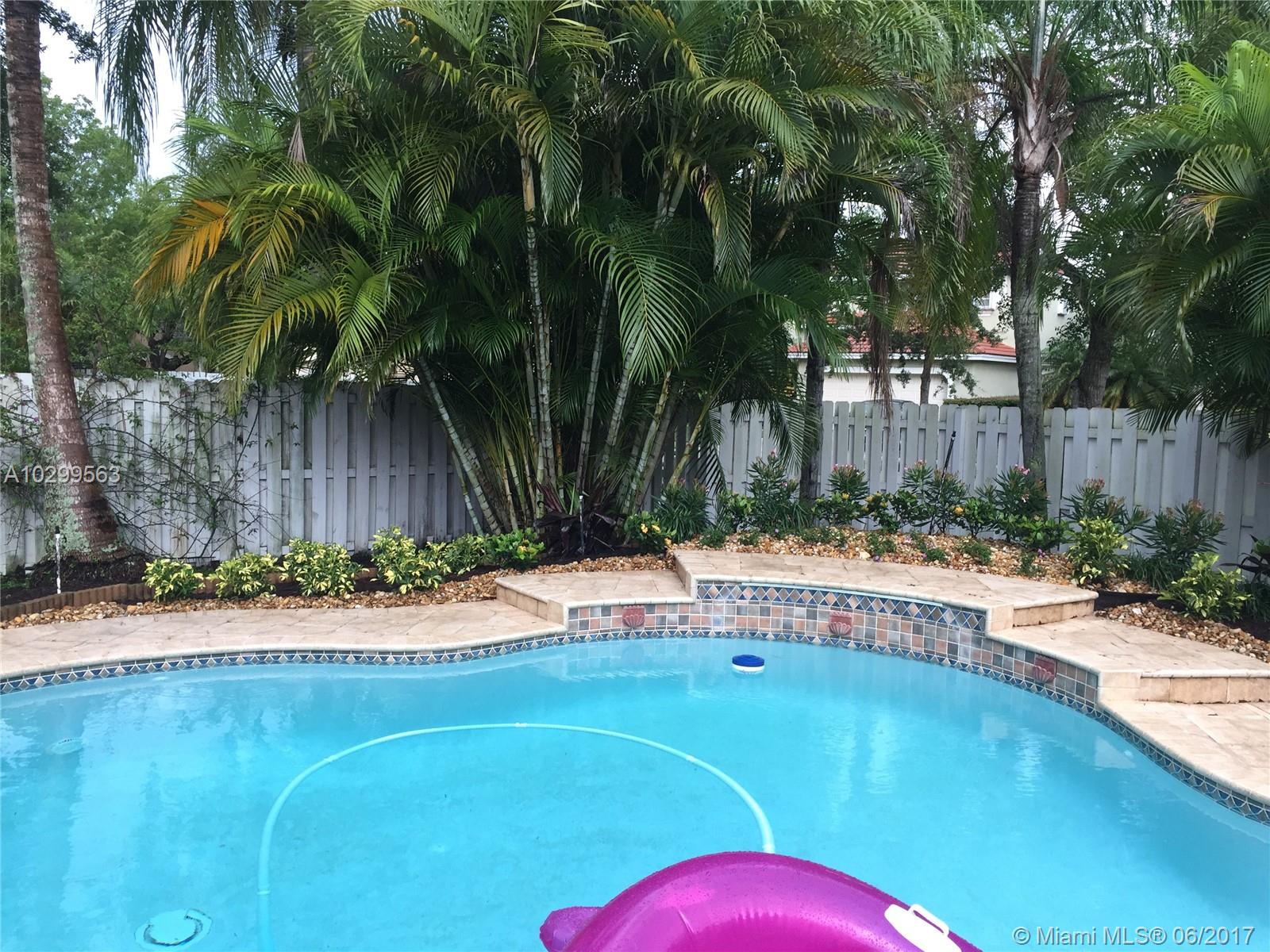 Beautiful home in one of Weston's most desirable communities, The Lakes. Home is on a corner lot, beautifully landscaped, with a fenced in gorgeous pool, in a private and quiet area. Has a large screened in patio with a beautiful hot tub conveniently located outside the master bedroom. All stainless kitchen appliances brand new & warrantied. AC and water heater newer & warrantied. In walking distance from Publix shopping center & fabulous A+ schools - Eagle Point, Tequesta Middle, & Cypress Bay.
