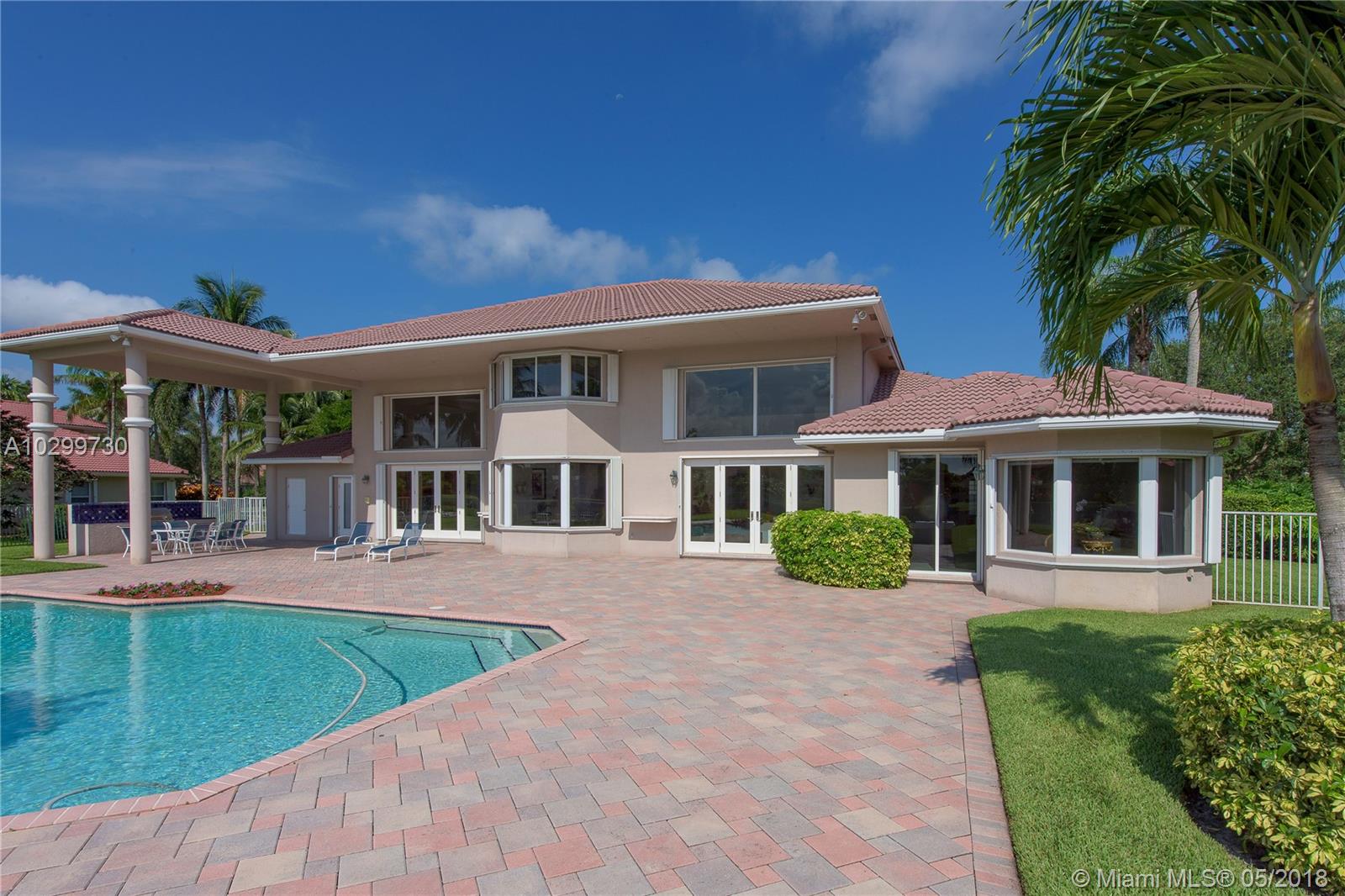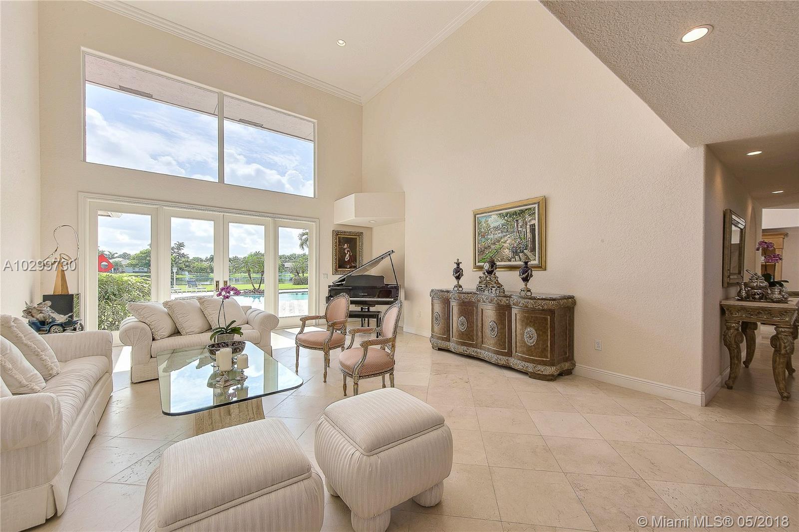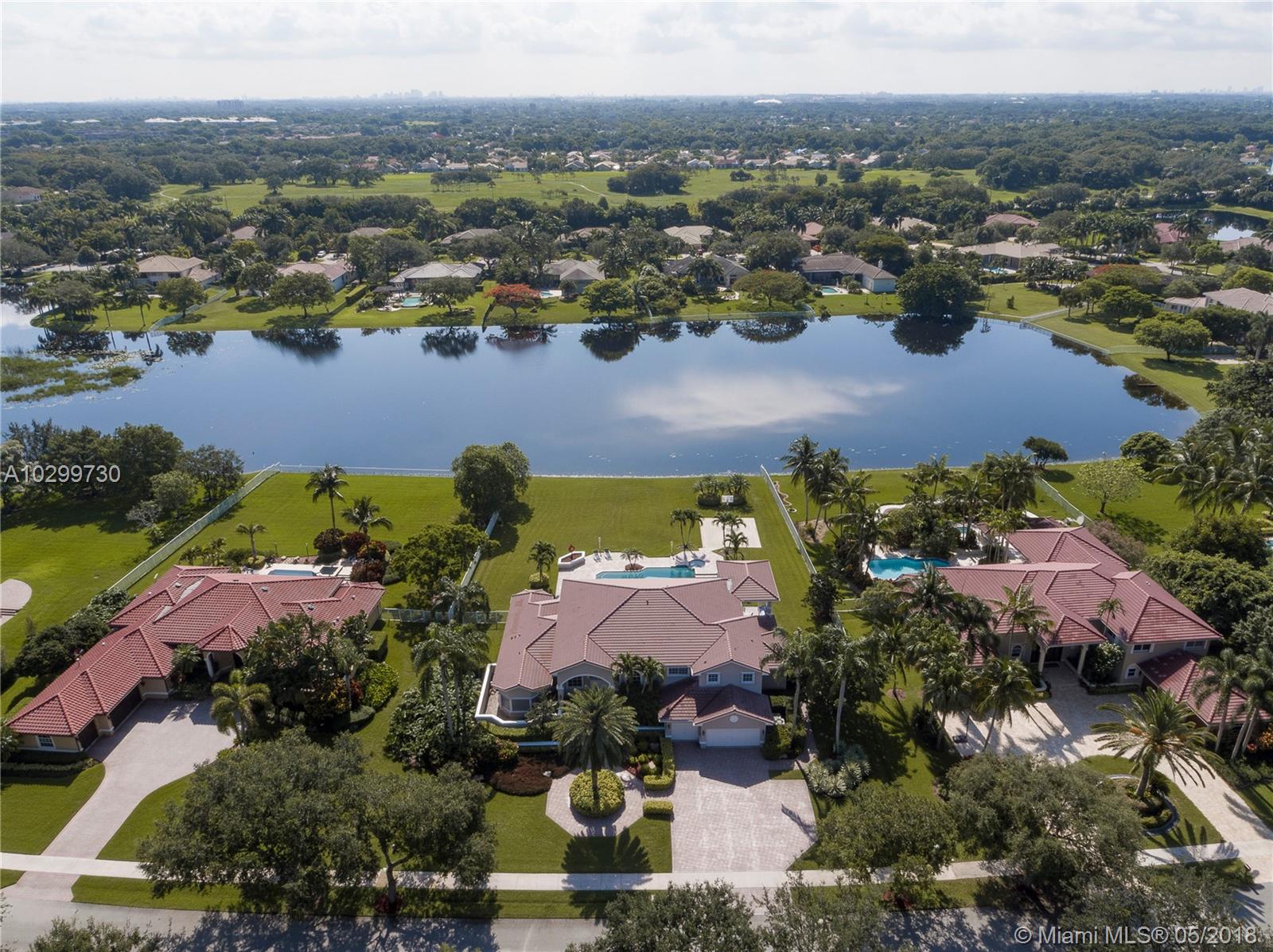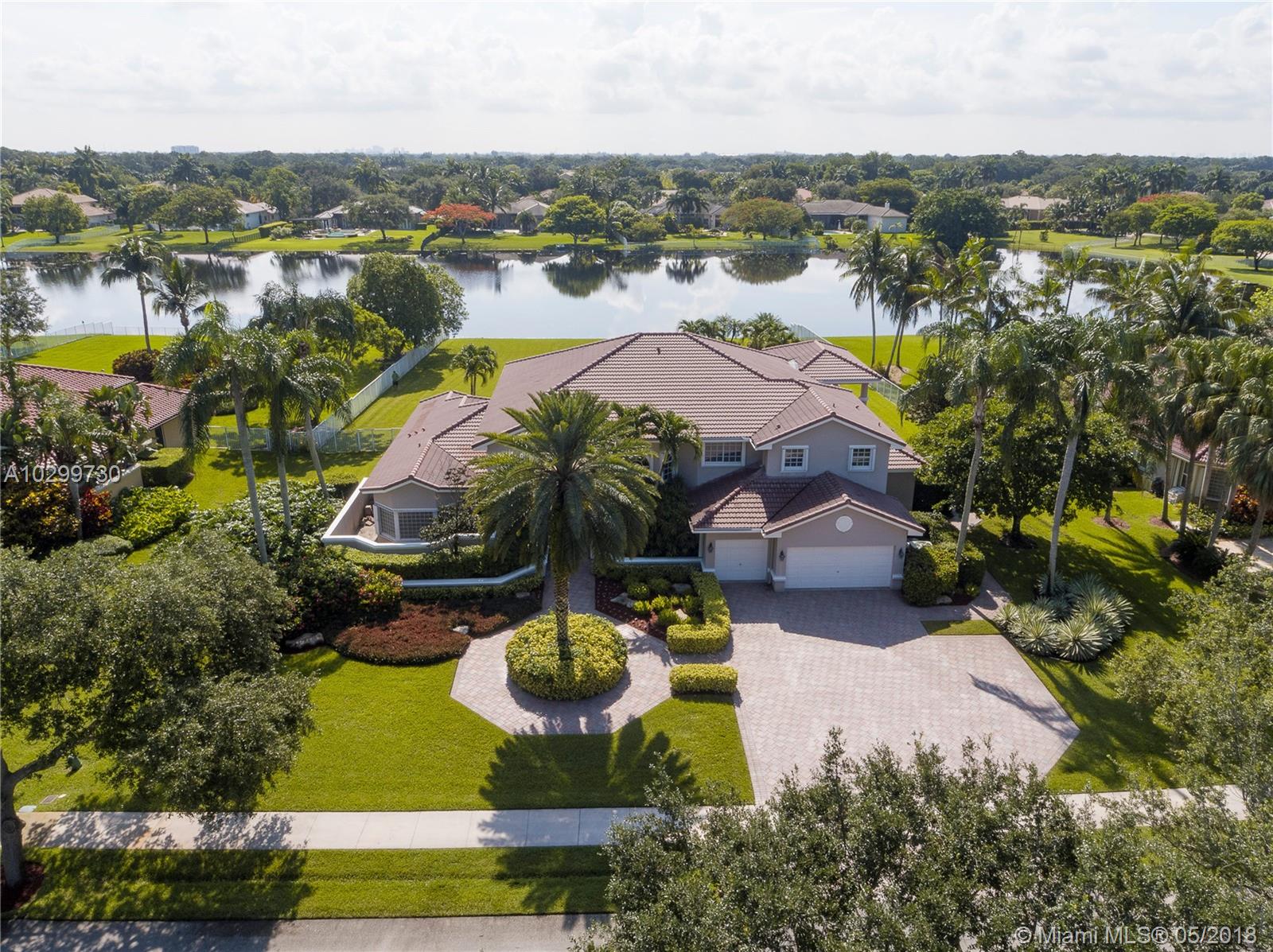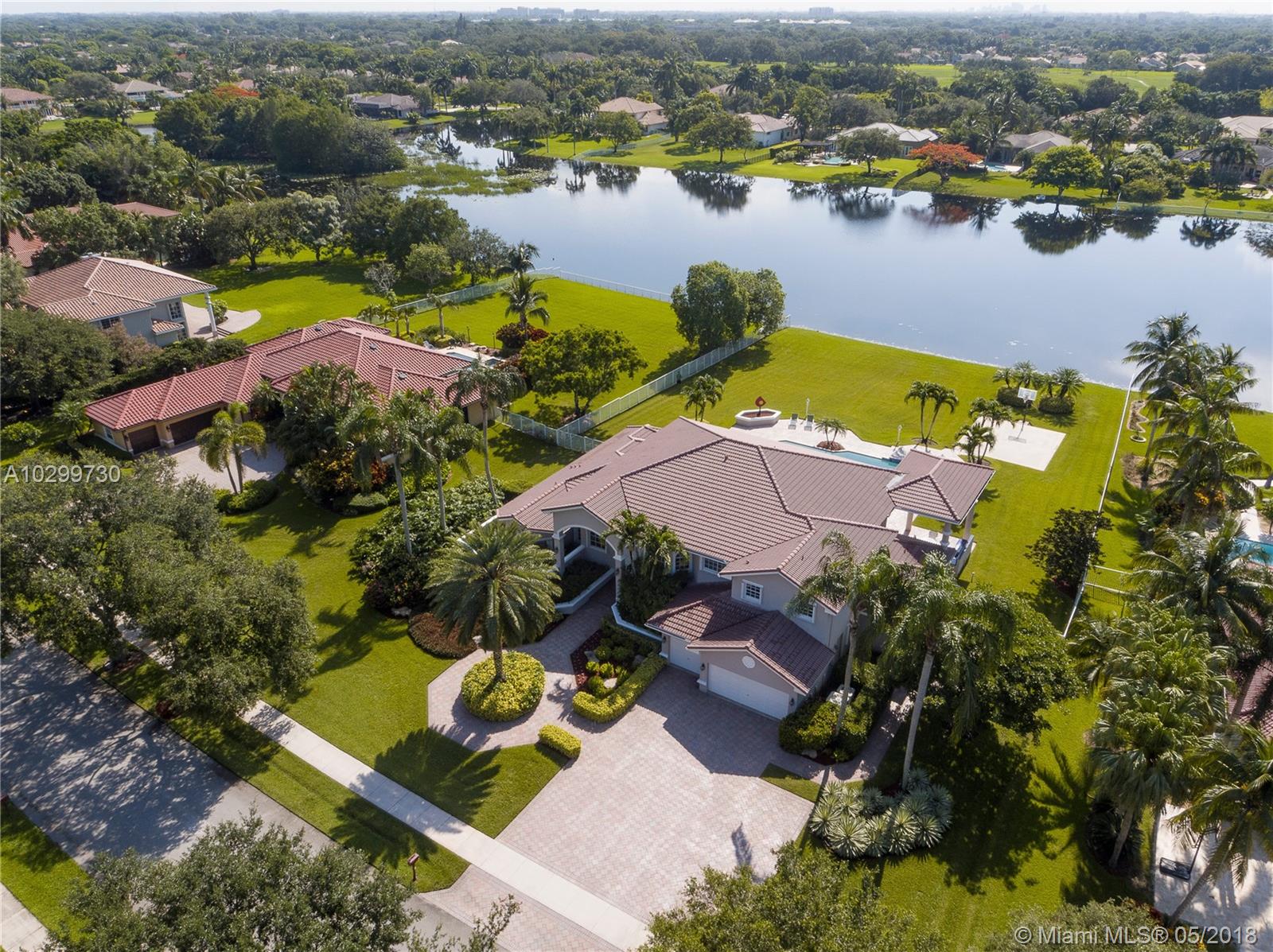 Wonderful Westridge waterfront custom estate. This home with 6 bedrooms, 5 full bathrooms and 2 half bathrooms is located in one of Davie's most pristine guard gated communities. Natural light fills this contemporary home which has neutral finishes and a fabulous floor plan. The oversized master suite on the 1st floor has custom closets and soaring ceilings. There are 3 more bedrooms with en suite bathrooms upstairs and 2 more bedrooms and bathrooms downstairs. Entertain on the expansive pool deck with summer kitchen and basketball court overlooking the lake. Some additional features include marble flooring in all common areas, open kitchen with custom wood and granite, formal living and dining room, central vac and 3 car garage. The best public schools and the finest luxury living.