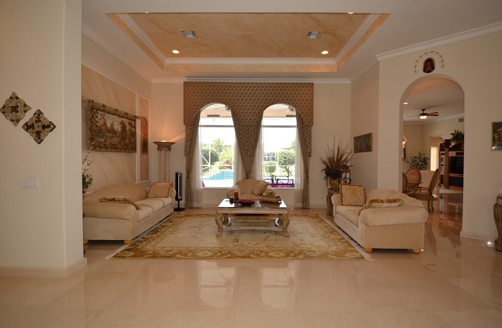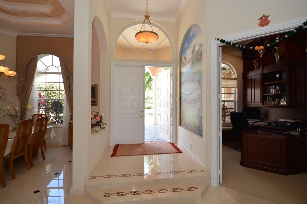 This beautiful, custom-built luxury home with open floorplan is upgraded to the max w/well-over $200K in upgrades. Located on 1/2 acre WF lot in Fox Ridge Estate, it has 5 bed+den, 4.5 bath & a huge enclosed patio, with NO direct-facing front or back homes! The home features marble floors, crown molding, bltin office, Impact glass/accordion shutters, salt water pool, 2 new a/c, gourmet kitchen with blt-in SS appl., and much more! Fox Ridge is a 24-hr. guard gated comm. w/playground, park, tennis. Low HOA!