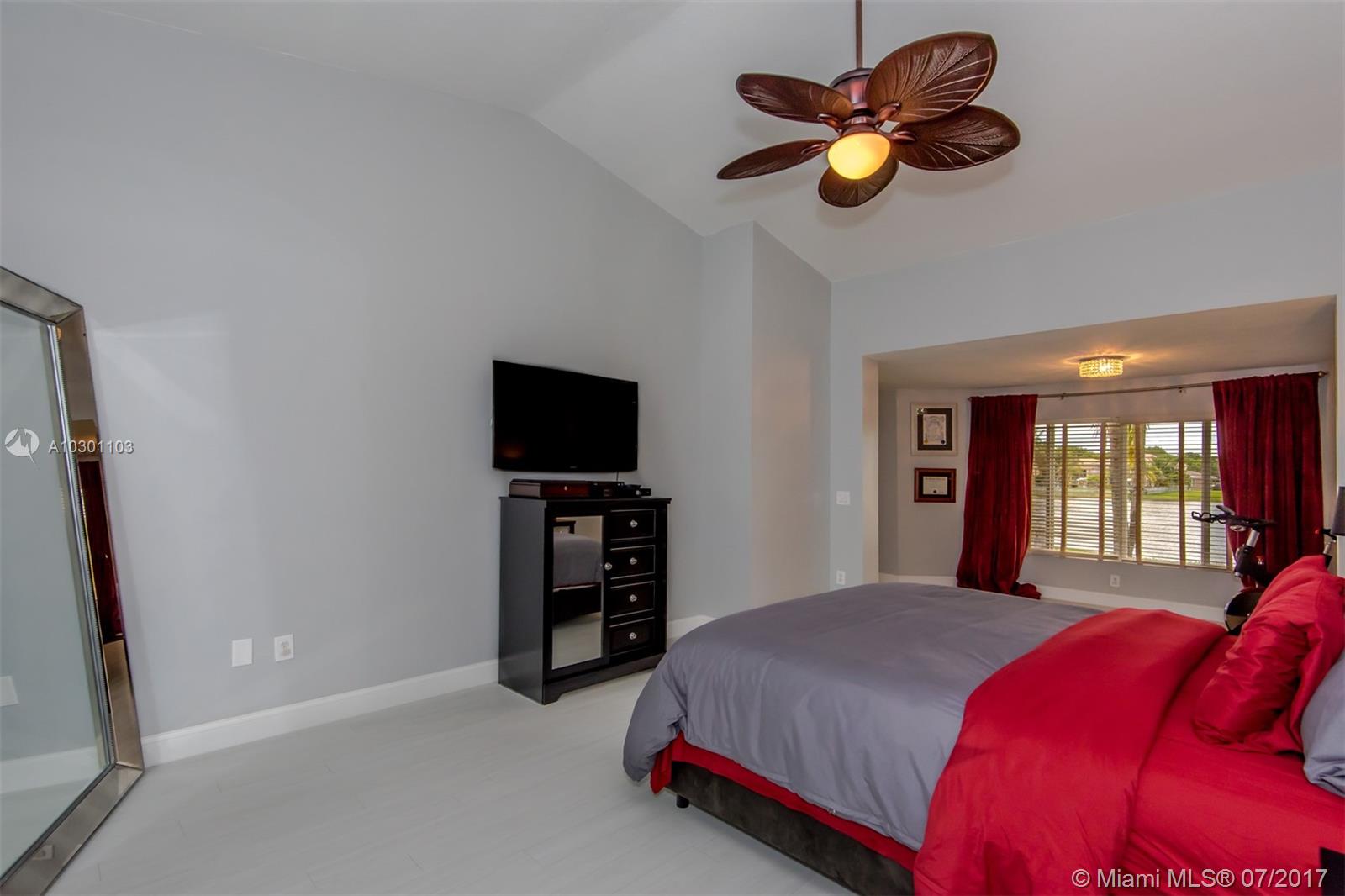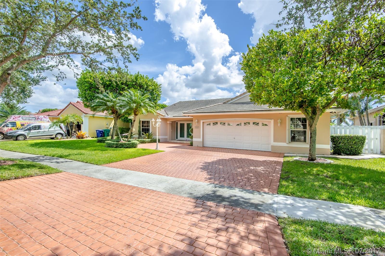 Beautifully remolded single story home in Bristol Isle with one of the best lake views. This 3 bedroom 2 bath home has according shutters, stamped concrete drive way, tiled back yard patio area, large master bedroom with siting area expanded and permitted, and new light fixtures, including chandeliers included. Exterior surveillance cameras and monitoring equipment also included. All bath rooms and kitchen were upgraded and nicely tiled. Garage has a separate work area. Stainless Steal appliances, brand new A/C, plus much more. Don't miss this opportunity to own this gem of a home.