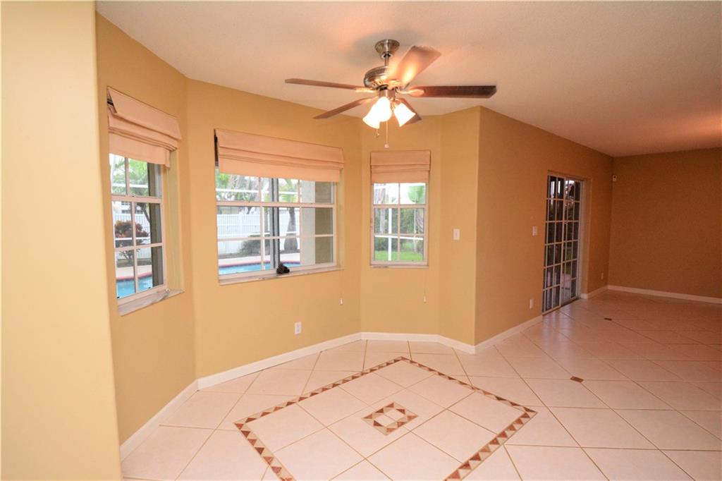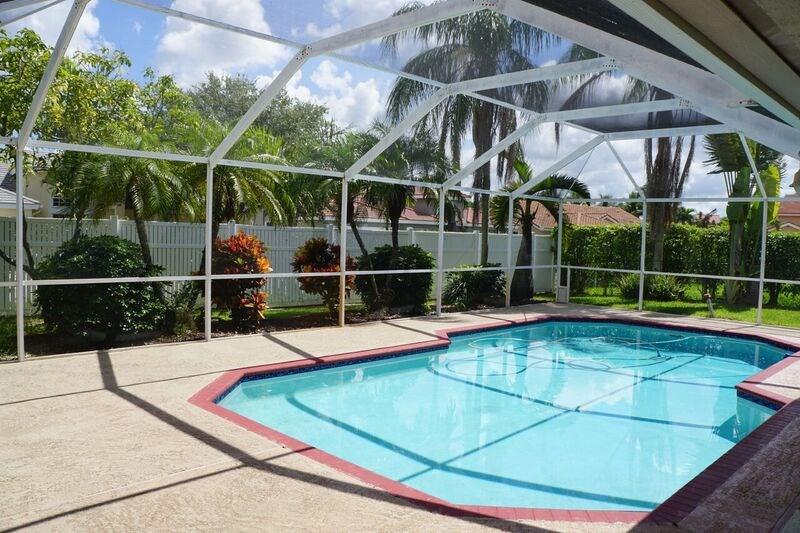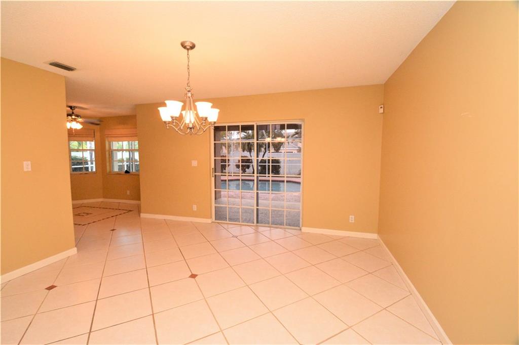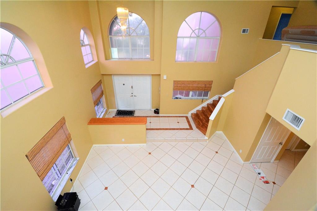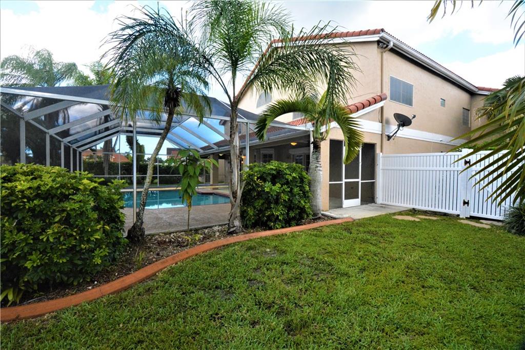 This home presents soaring two story high ceilings as you enter the foyer and living room. Formal dining room, breakfast area and snack bar give multiple options for dining. Kitchen features all SS appliances, gorgeous granite countertops and pantry. One full bath and bdrm are on the lower level. Master bdrm has a room attached for nursery/office/exercise. Gorgeous backyard w huge screened in pool.Roll down hurricane shutters and security system for protection. Privacy fence. Roof is only 11 years old!