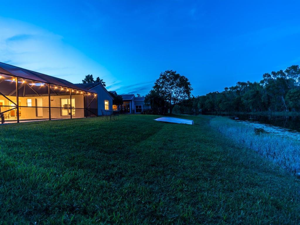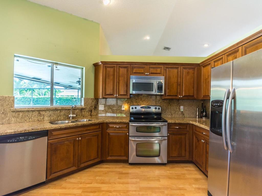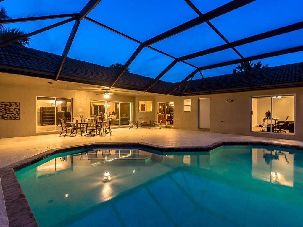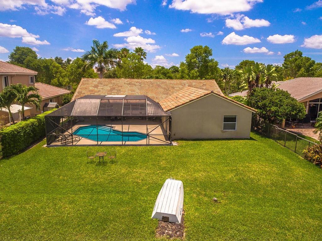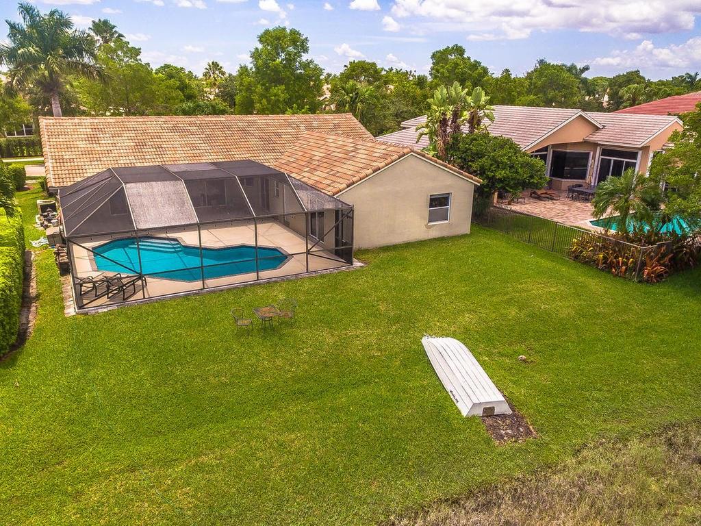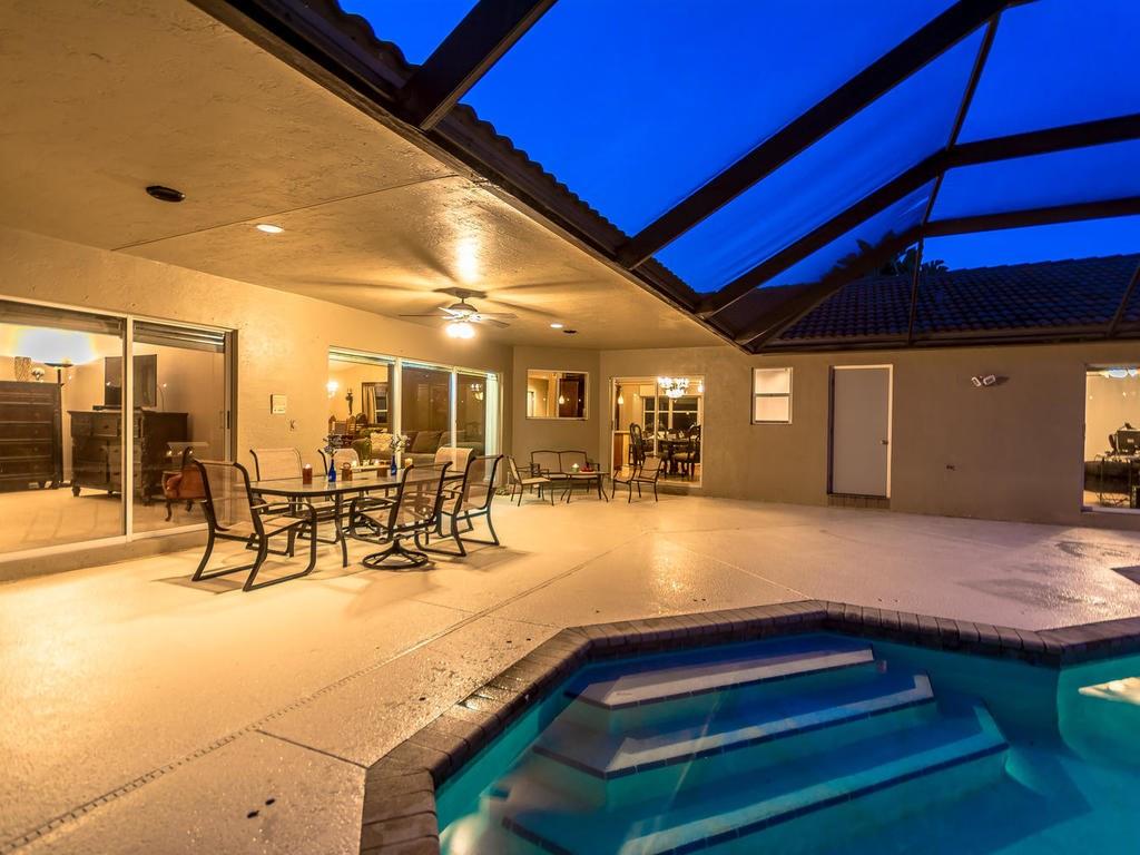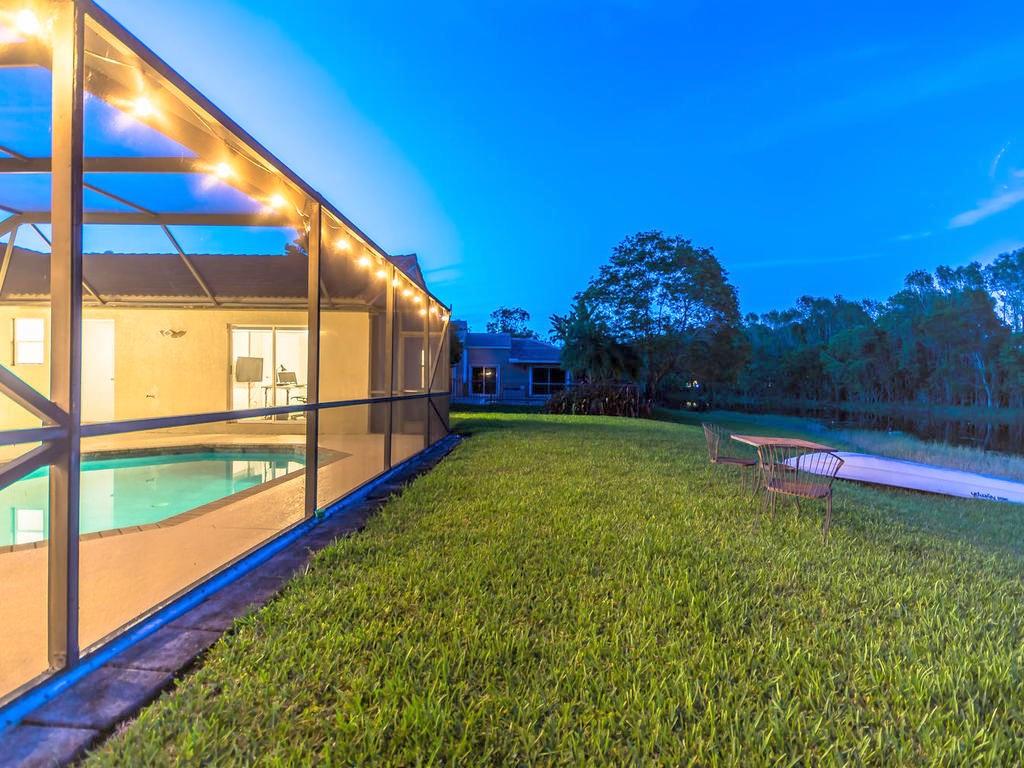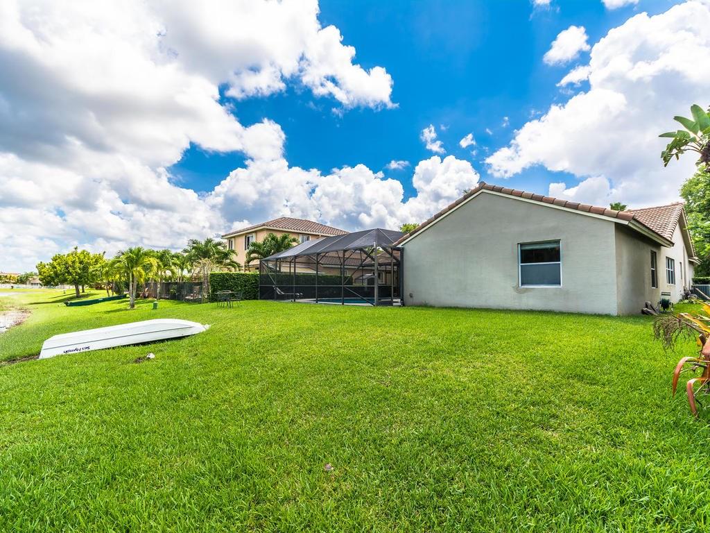 GORGEOUS 4/2.5/2CG SINGLE STORY ON PEACEFUL LAKEFRONT LOT W/LUSH PRIVACY BERM & HUGE YARD FOR PLAY! AN ENTERTAINERS DREAM! LARGE COVERED SCREENED PATIO W/EXTENDED OVERHANG, TWINKLING LIGHTS & HEATED POOL, PERFECT FOR YEAR-ROUND ENJOYMENT! SPACIOUS SPLIT FLR PLN W/HIGH CEILINGS, WOOD LAM FLOORS IN LIV AREAS, REMODELED GRANITE KITCHEN, WOOD CABS, NEWER SS APPLI INCL DOUBLE OVENS & LARGE SNACKBAR ISLAND. NEW ROOF! CABANA BTH, NEW WASHER, OUTDOOR SPEAKERS. GUARD GATED, CLUBHOUSE, TOTLOT, BALL PARK, A+SCHOOLS!