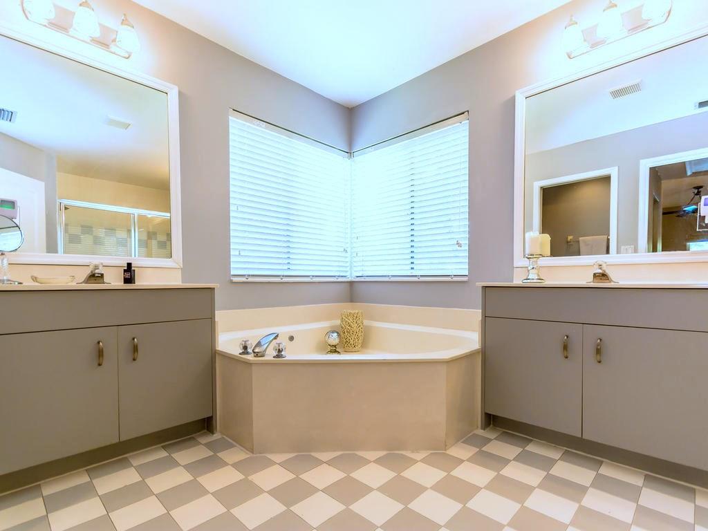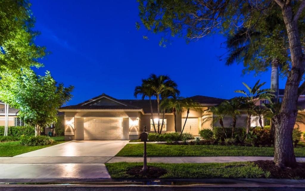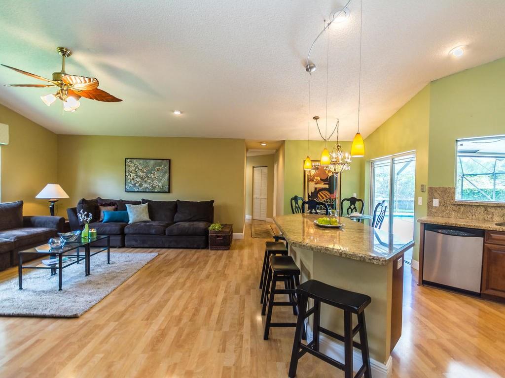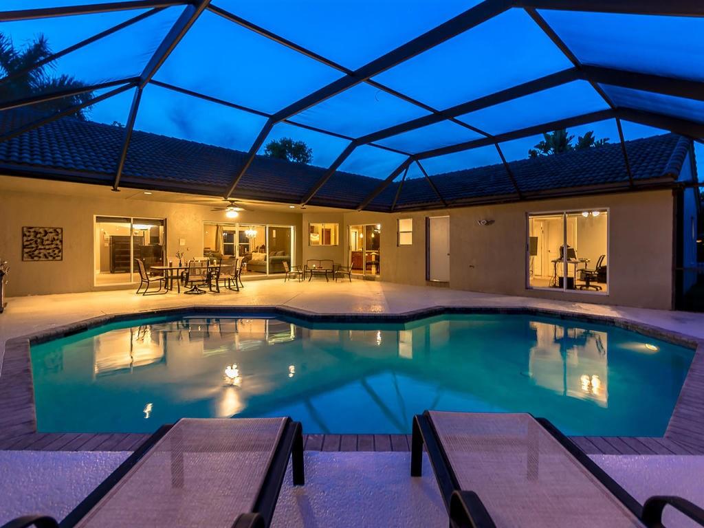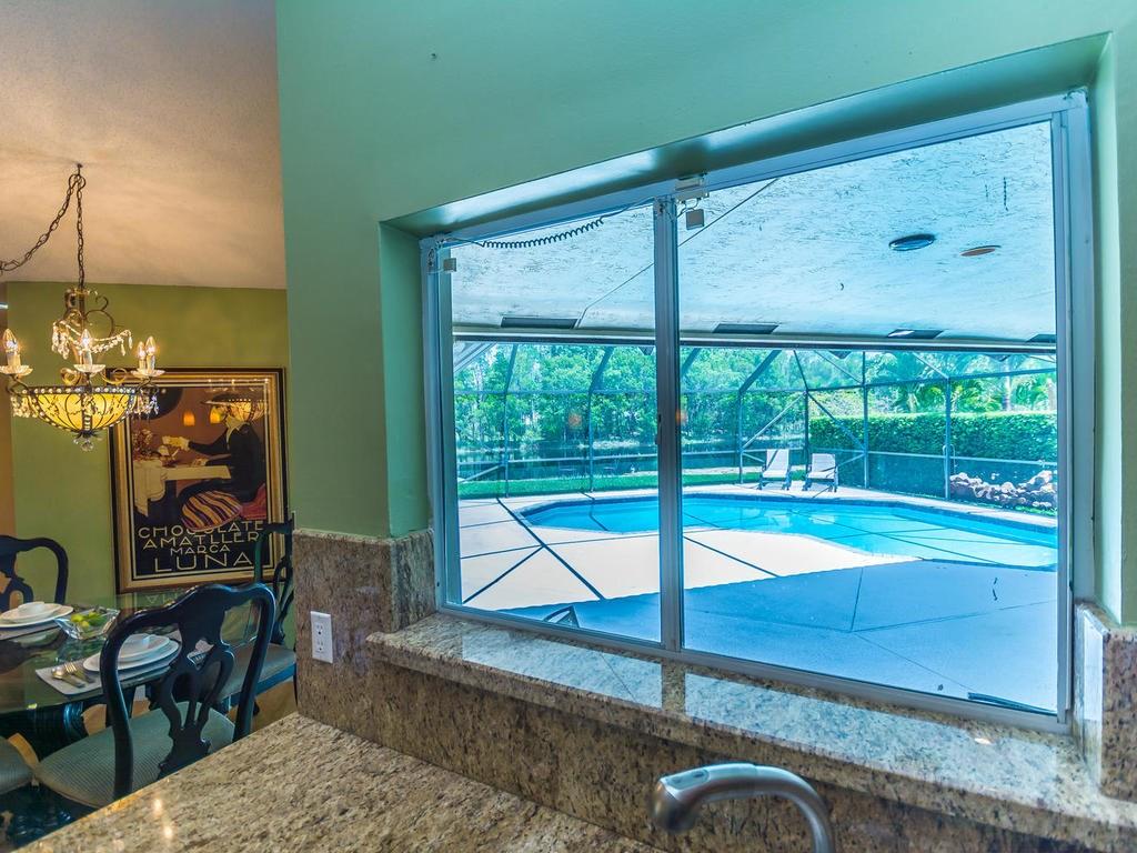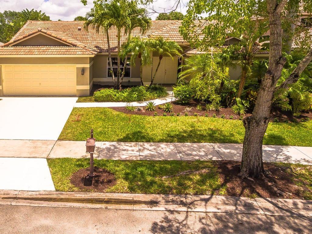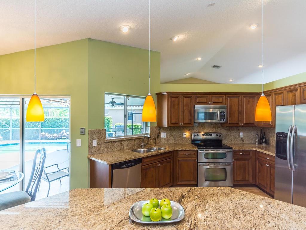 GORGEOUS 4/2.5/2CG SINGLE STORY ON PEACEFUL LAKEFRONT LOT W/LUSH PRIVACY BERM & HUGE YARD FOR PLAY! AN ENTERTAINERS DREAM! LARGE COVERED SCREENED PATIO W/EXTENDED OVERHANG, TWINKLING LIGHTS & HEATED POOL, PERFECT FOR YEAR-ROUND ENJOYMENT! SPACIOUS SPLIT FLR PLN W/HIGH CEILINGS, WOOD LAM FLOORS IN LIV AREAS, REMODELED GRANITE KITCHEN, WOOD CABS, NEWER SS APPLI INCL DOUBLE OVENS & LARGE SNACKBAR ISLAND. NEW ROOF! CABANA BTH, NEW WASHER, OUTDOOR SPEAKERS. GUARD GATED, CLUBHOUSE, TOTLOT, BALL PARK, A+SCHOOLS!