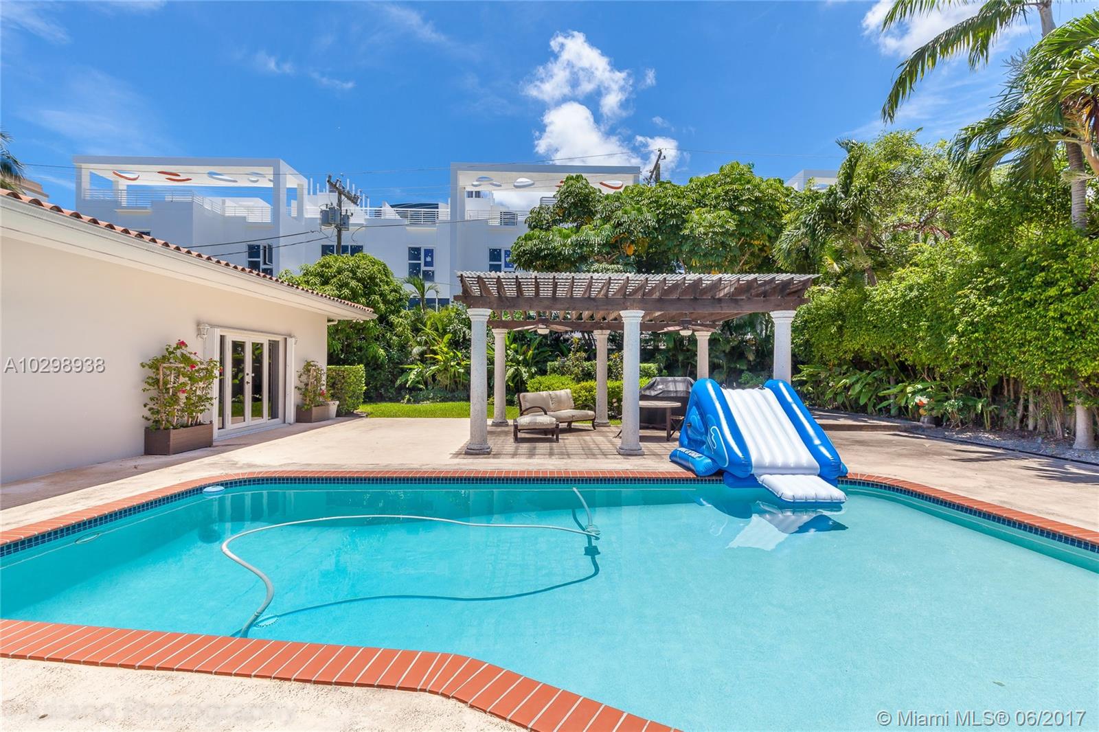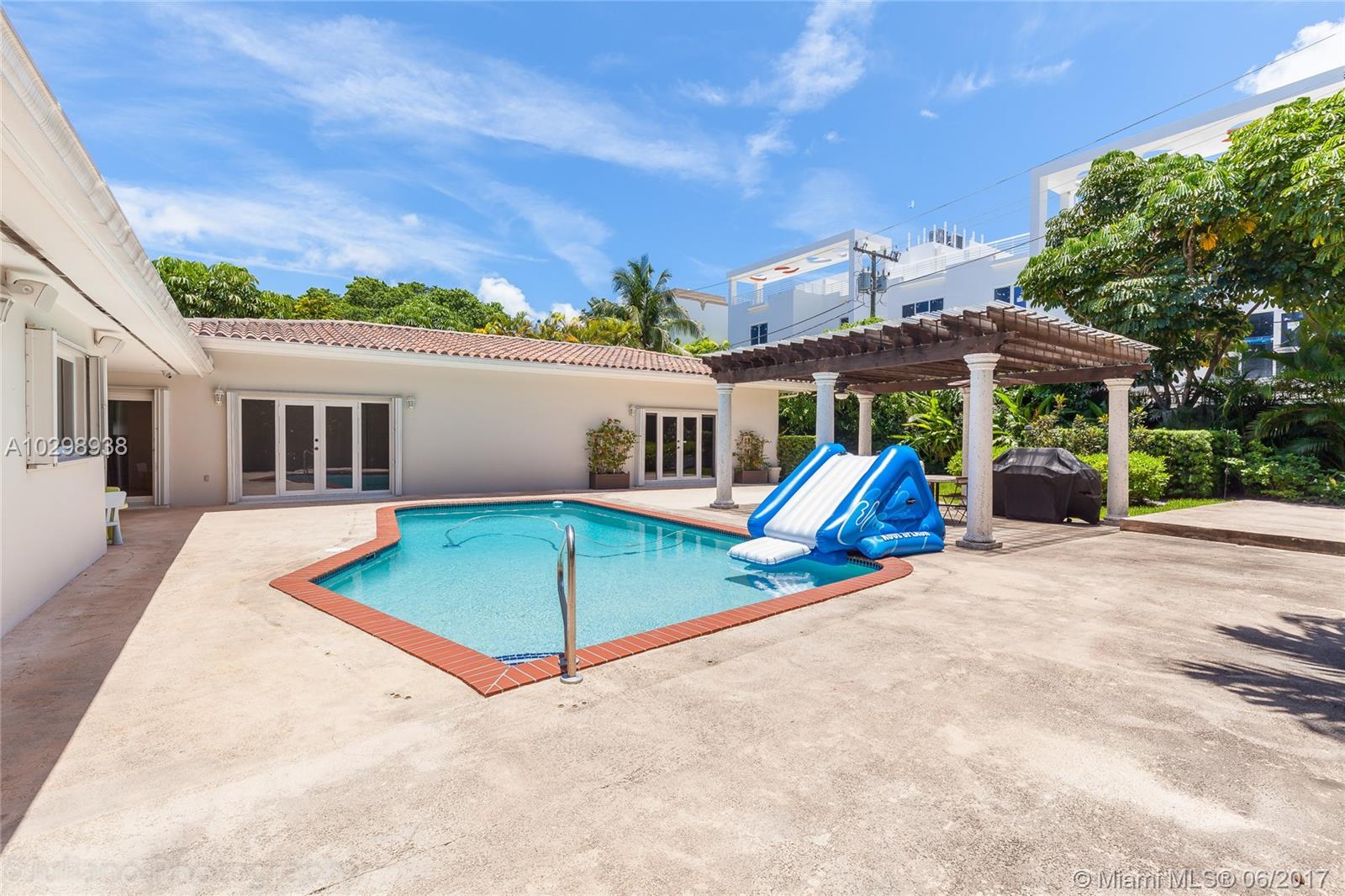 This spectacular one-story 5 bedroom completely renovated home features bright open floor plan, huge master with high ceilings and spacious bath and walk-in closet, large eat-in gourmet kitchen, maids quarter, sunny backyard with pool and covered trellis area, and a whole house generator. Located in the exclusive private gated community of Bay point, ideal for families, minutes from the Miami Design District and Midtown!