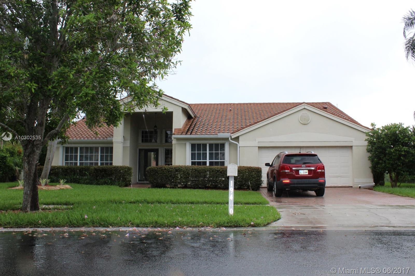 Spacious 1-story 4 bedroom 2 bathroom single family waterfront home in West Pembroke Pines located in Chapel Trail Estates! This home is located on a 16,000+ sq ft waterfront lot! The 4th bedroom has french doors and utilized as a home office. Large walk in closets, interior laundry room, vaulted ceilings in main living area. The kitchen is open to large family room. Roof was replaced with a metal S-tile and the 50 year warranty will be transferred to new owner. Roof withstands 110 mph winds. Plenty of room for a pool, tiki hut and more! Beautiful gated community, award winning schools, close to Rose Price Park. Easy access to major highways& shopping. This home is ready for a new owner's personal touch!