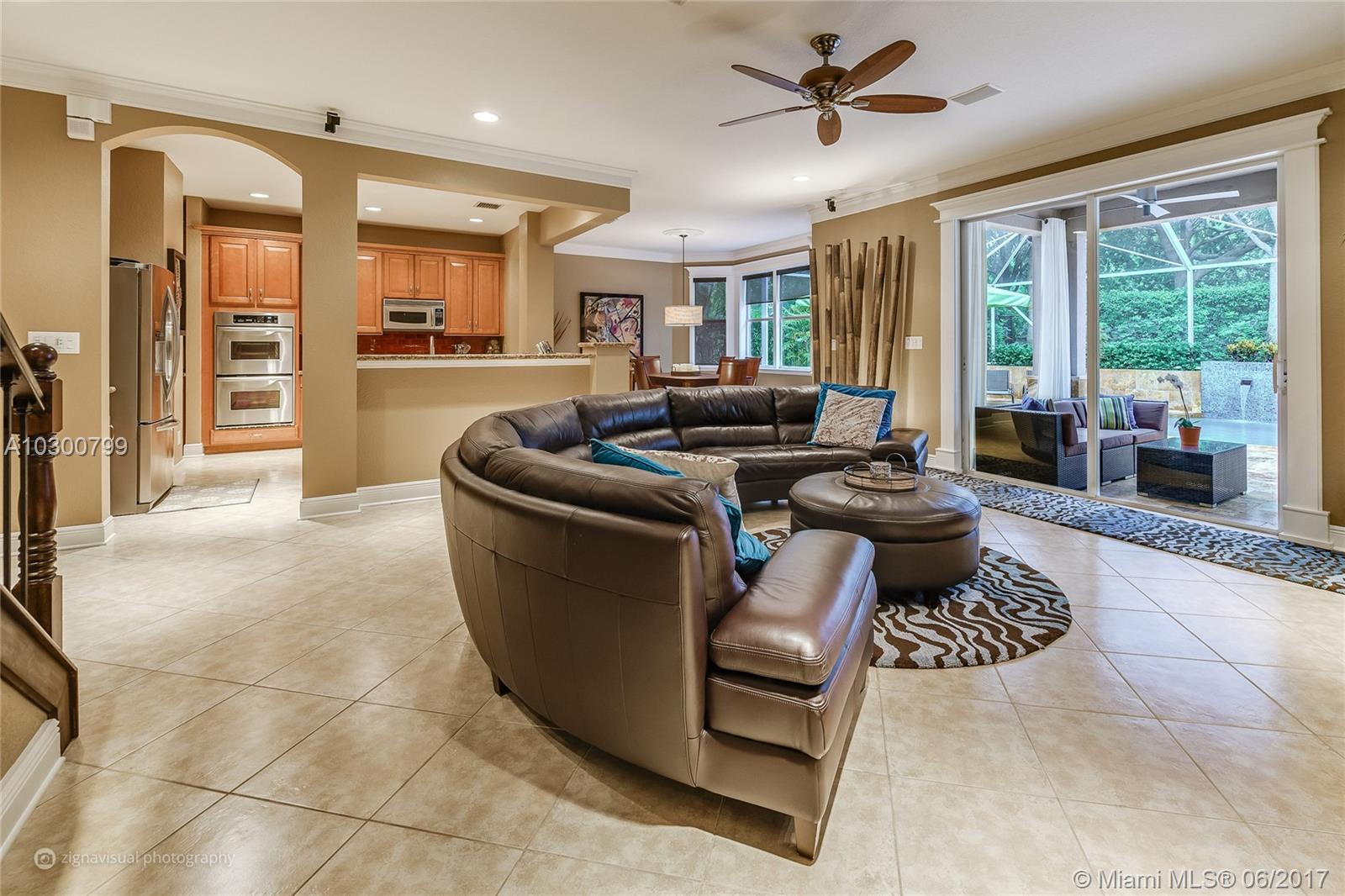This immaculate, airy, luxurious 2-story home boasts a resort-style screened in pool & patio complete with summer kitchen. With 5 large bedrooms (including 1st floor in-law suite) 5 baths, den, large upstairs study with 2 built in desks & oversize closets that could easily be a 6th bedroom, this home has generous living space. Closet organizers in each bedroom is great bonus. Gourmet kitchen with Italian-style 42" cabinetry, stainless steel appliances & granite counter tops overlook the large, inviting family room & relaxing pool area. This home showcases a double wrought iron staircase & an oversize master bedroom suite, complete with 2 large walk-in closets & sitting area, ensures parents all the privacy they need. This desirable, gated community has A+ schools.