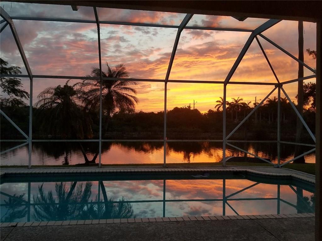 5 bed 3 full baths,water front property with backyard facing west for spectacular sunsets every night from your large screened patio/pool/deluxe spa. Freshly painted!! Excellent Schools!! Gated community!! Huge master bedroom,with large Roman Tub and dual sinks. Large bedroom and full bathroom on 1st floor. Kitchen opens to family room!! Family room overlooks pool and water view!! Accordion shutters and hurricane rated garage door.!!!