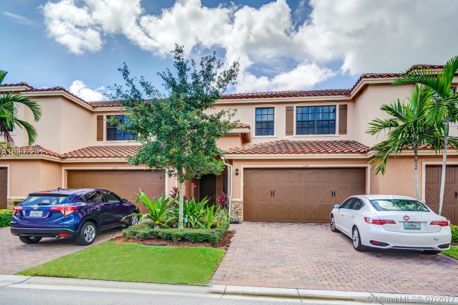 Beautiful 2-story townhouse with tons of upgrades & centrally located in the gated community of Riverwalk at Largo Mar! This 3 bedroom, 2.5 bathroom, 2 car garage townhouse features an open floor plan, gorgeous kitchen with granite counter tops, wood cabinets with a center island that opens to the spacious family room, hurricane impact windows & doors, & plenty of parking for guests. Master suite features trey ceilings, big walk-in closet, master bath w/dual sinks, roman tub, frameless shower doors. Community amenities include a beautiful clubhouse & salt water pool. Riverwalk at Lago Mar is close to I-595, Sawgrass expressway and I-75. Sawgrass Mills Mall and plenty of shopping just around the corner.