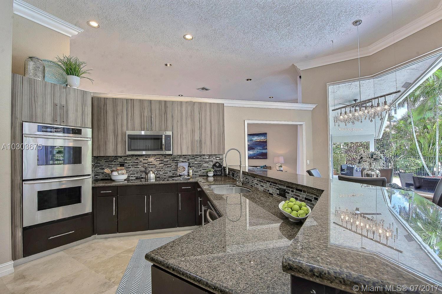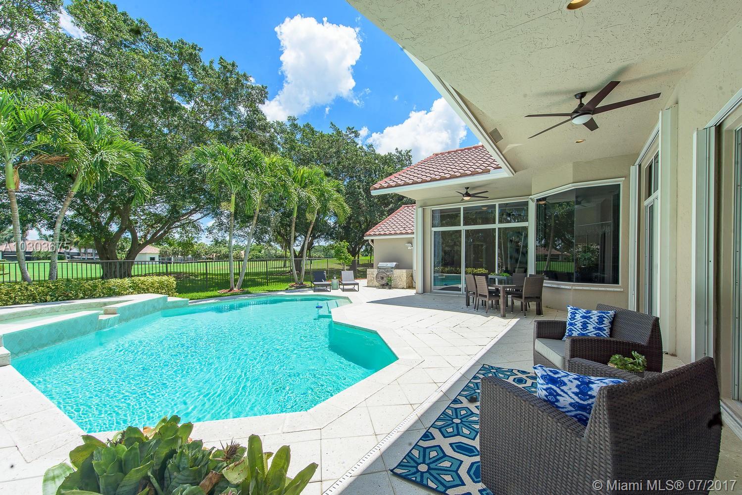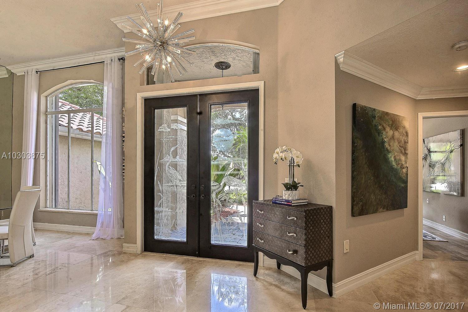 Welcome to this stunning pool home in Weston Hills County Club. Majestically located on the beautifully manicured golf course, this completely renovated home features marble floors, crown molding, granite and stainless steel kitchen, all bathrooms upgraded with floor to ceiling marble, his and her closets, Jacuzzi, built in BBQ island, accordion shutters, lush tropical landscape, new chandelier's and lighting fixtures, built-ins, window treatments and to top it off built in cabinetry in the garage with a small bonus room that can be used for clothes or storage. The roof can stay or be torn down at the sellers expense. Property is ready to be moved into. Just bring your toothbrush!