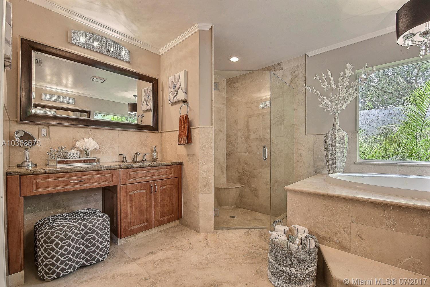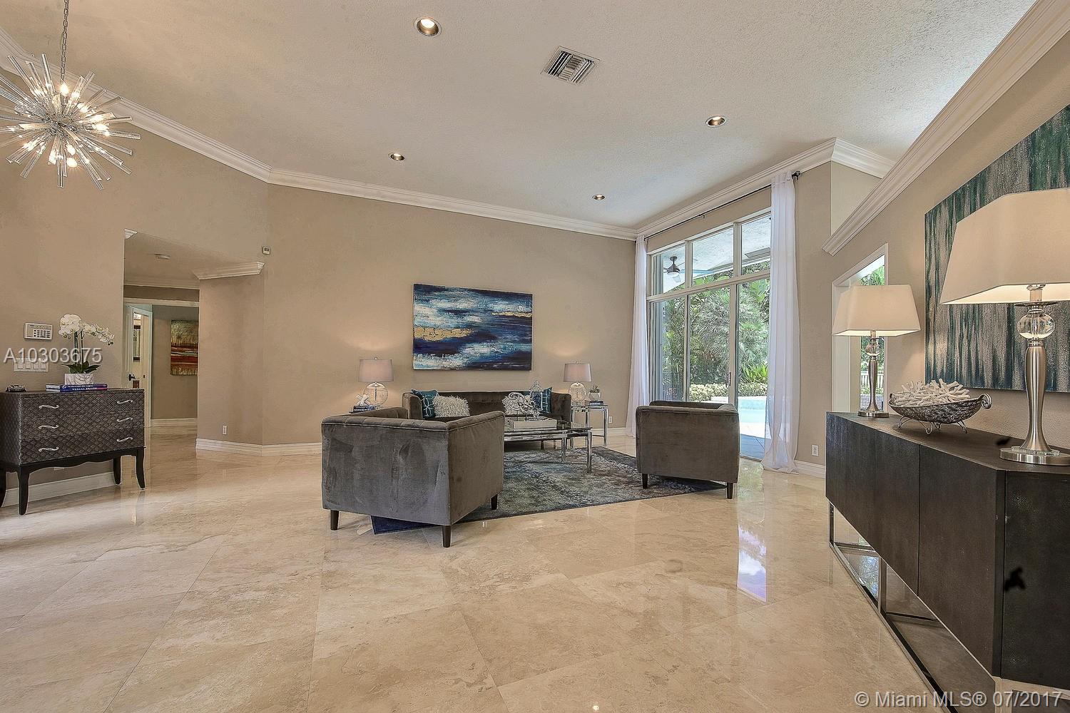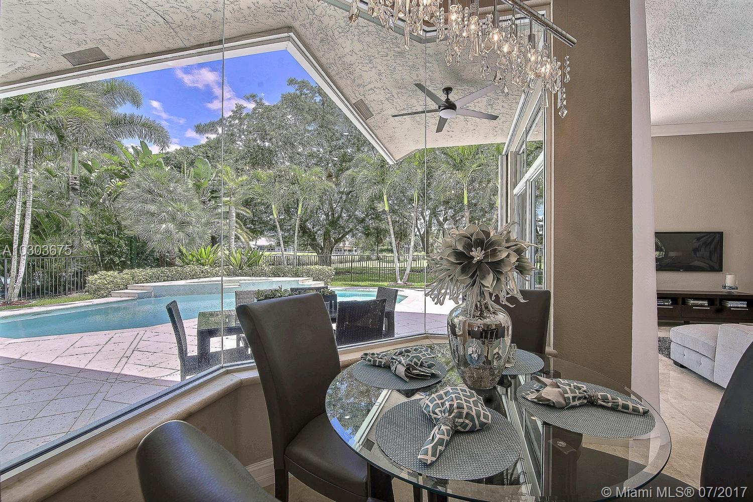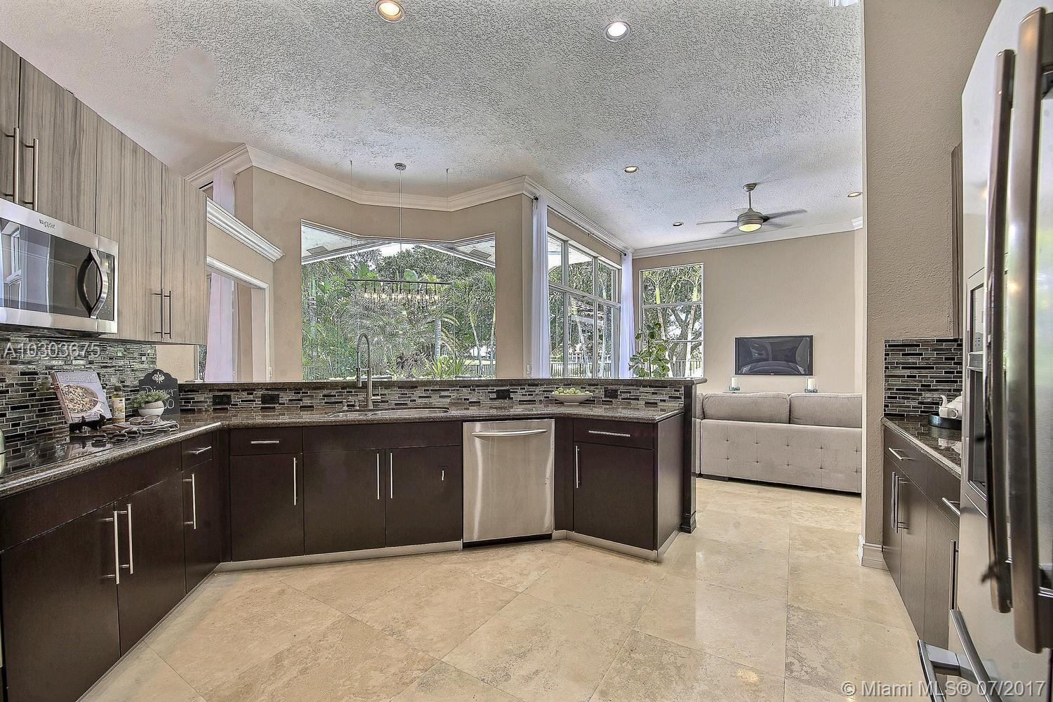 Welcome to this stunning pool home in Weston Hills County Club. Majestically located on the beautifully manicured golf course, this completely renovated home features marble floors, crown molding, granite and stainless steel kitchen, all bathrooms upgraded with floor to ceiling marble, his and her closets, Jacuzzi, built in BBQ island, accordion shutters, lush tropical landscape, new chandelier's and lighting fixtures, built-ins, window treatments and to top it off built in cabinetry in the garage with a small bonus room that can be used for clothes or storage. The roof can stay or be torn down at the sellers expense. Property is ready to be moved into. Just bring your toothbrush!