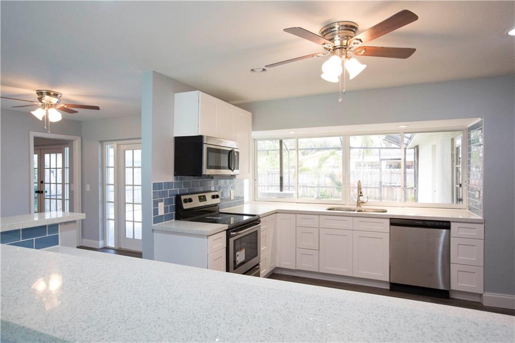 Wow! You won't find a nicer house in the area! This 4/2/2 pool home has it all- Brand new roof, totally rescreened pool cage, new floors through out, new paint, brand new stainless steel appliances. Home also has paver pool deck, white shaker kitchen cabinets, quartz counter tops, subway tile in baths and kitchen, super cool blue epoxy garage floor. It has a great room AND family room plus a large inside bar area and pass through window to bar area by the pool. AND, this home is priced to sell fast!