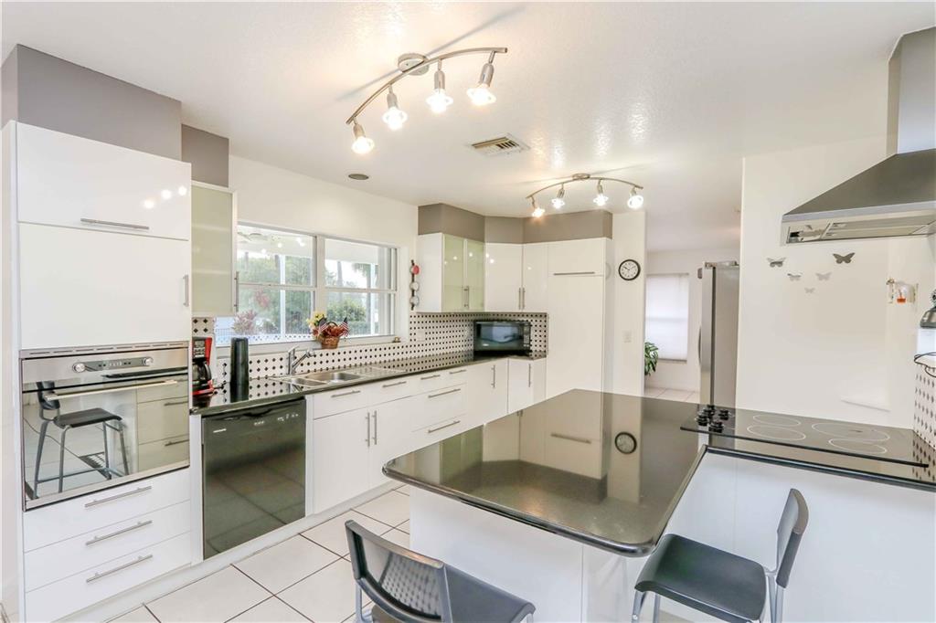 AMAZING HOME WITH OPEN FLOOR PLAN.NEW EUROPEAN STYLE KITCHEN WITH GRANITE COUNTER TOPS, TILED BACK SPLASH AND ALL NEW APPLIANCES. COOK TOP WITH EXHAUST RANGE HOOD. TONS OF STORAGE THROUGHOUT. BEDROOM AND FULL BATHROOM ON 1ST FLOOR.HUGE MASTER BEDROOM HAS BALCONY OVERLOOKING POOL AND LAKE. NEW LAMINATE FLOORS ON STAIRS AND 2ND LEVEL. BACK YARD FEATURES SCREENED IN TILED PATIO, BEAUTIFUL HEATED POOL, LAKE VIEW, AND FULLY FENCED YARD FOR PRIVACY. ENTIRE HOUSE PROTECTED BY ACCORDION SHUTTERS.