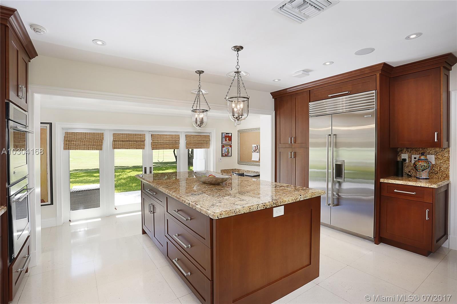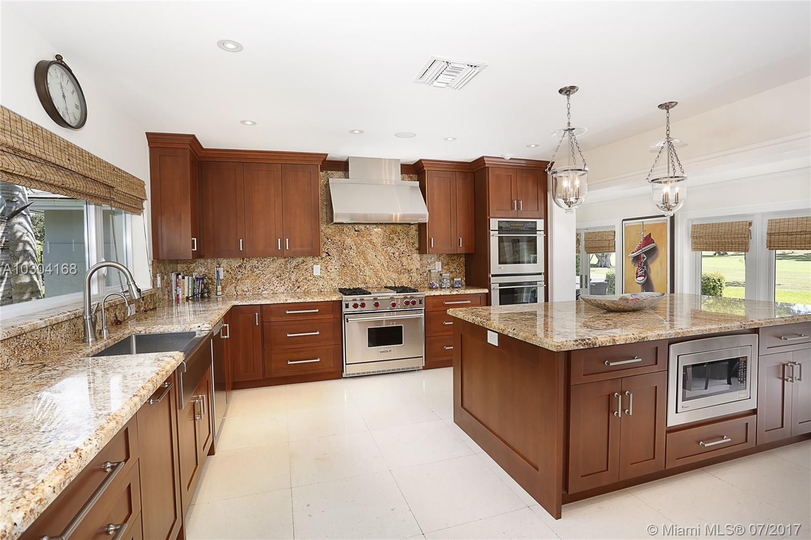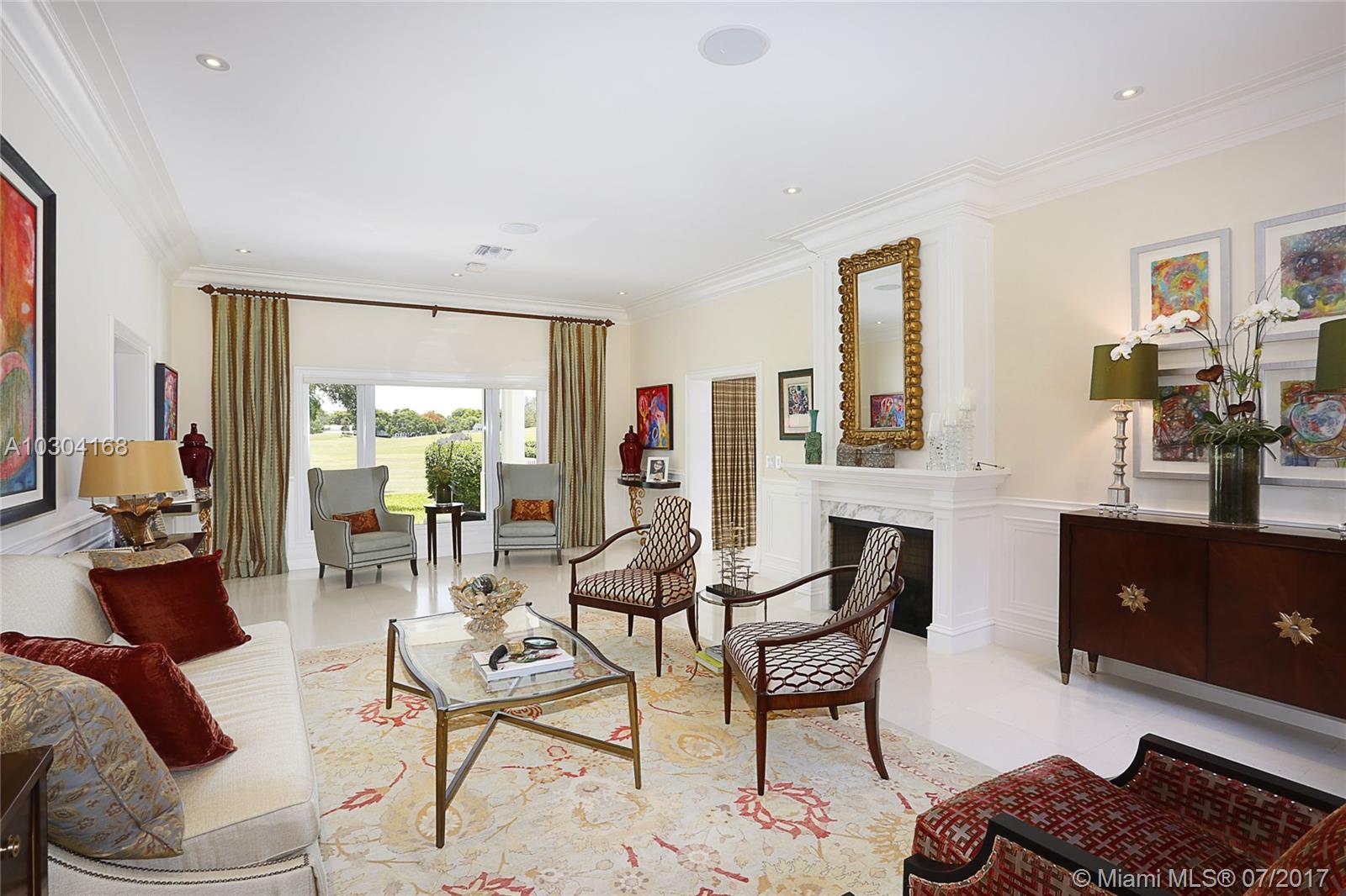 This is it! The perfect golf course home renovated top to bottom & elegantly finished. Enter the porte-cochere to a gracefully appointed covered entrance & foyer where your eye is drawn to the dramatic & wide vws of the Riviera golf course! Home is defined by high ceilings, gorgeous wainscoting & moldings, lge marble flr tiles, plantation shutters, & grand spaces. Frml liv rm w/fireplace & French drs, frml din rm has large wndws & gold leaf ceiling, family rm was enhanced to give the perfect movie watching experience & den creates cozy sitting rm, office, or BR. Master has 2 walk-in closets & lovely bath, 2 addl oversized BRs have renovated baths. Kitchen is large & open w/ high-end appliances incl Wolf stove. Addl BR w/new bath, laundry, wine cellar & 2 car gar. Lovely porch & new pool.