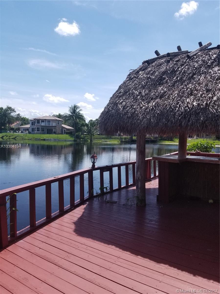 Best location in Jacaranda Golf Club. Stunning water front property on quiet cul-de-sac. Oversize lot, back deck, dock and a tiki hut/bar overlooking the long view of the lake. The large swimming pool finishes off the perfect family outdoor space. Inside, the home is large and ready for renovation. great opportunity. Contractor special! Priced to sell quickly!